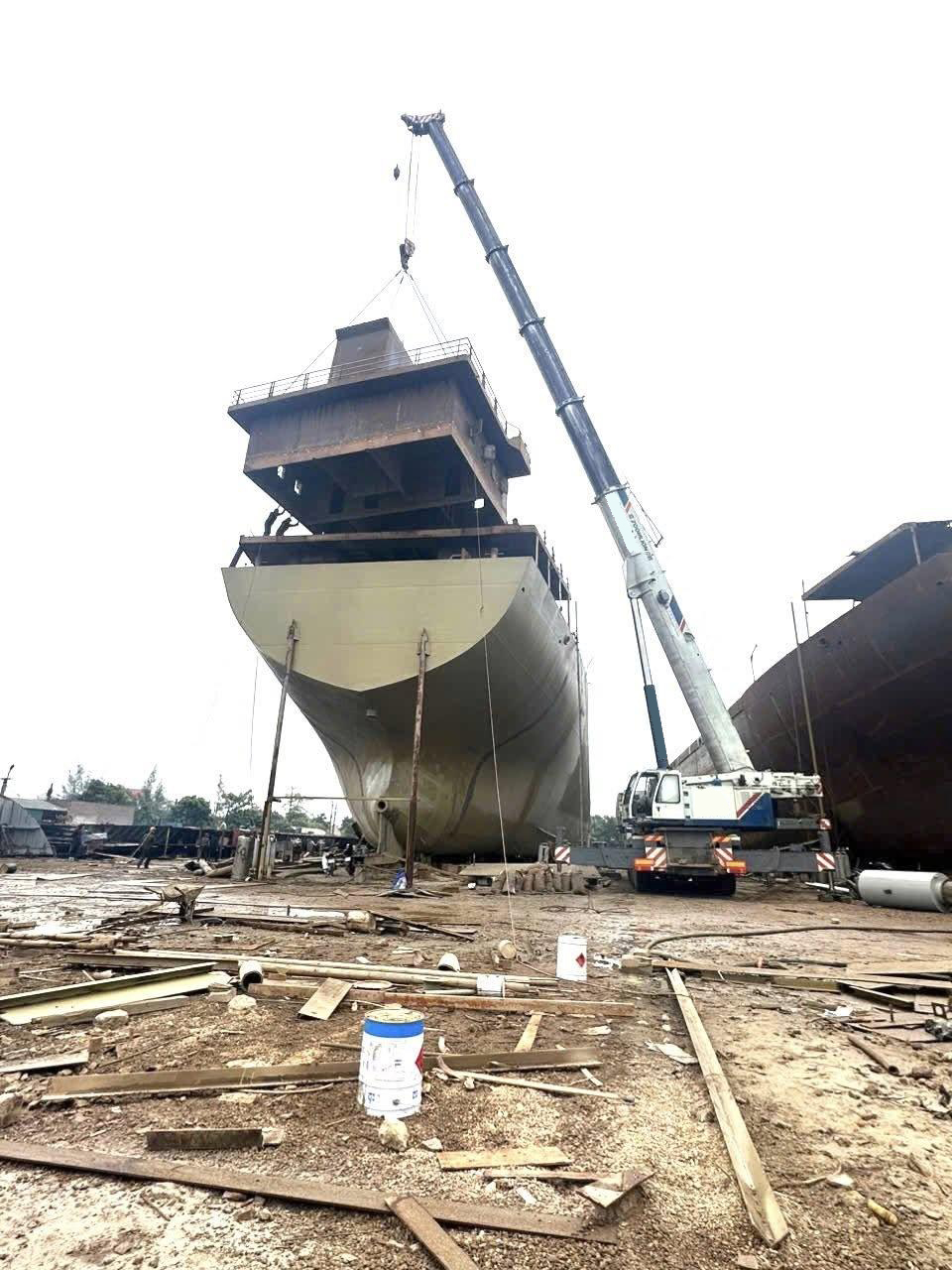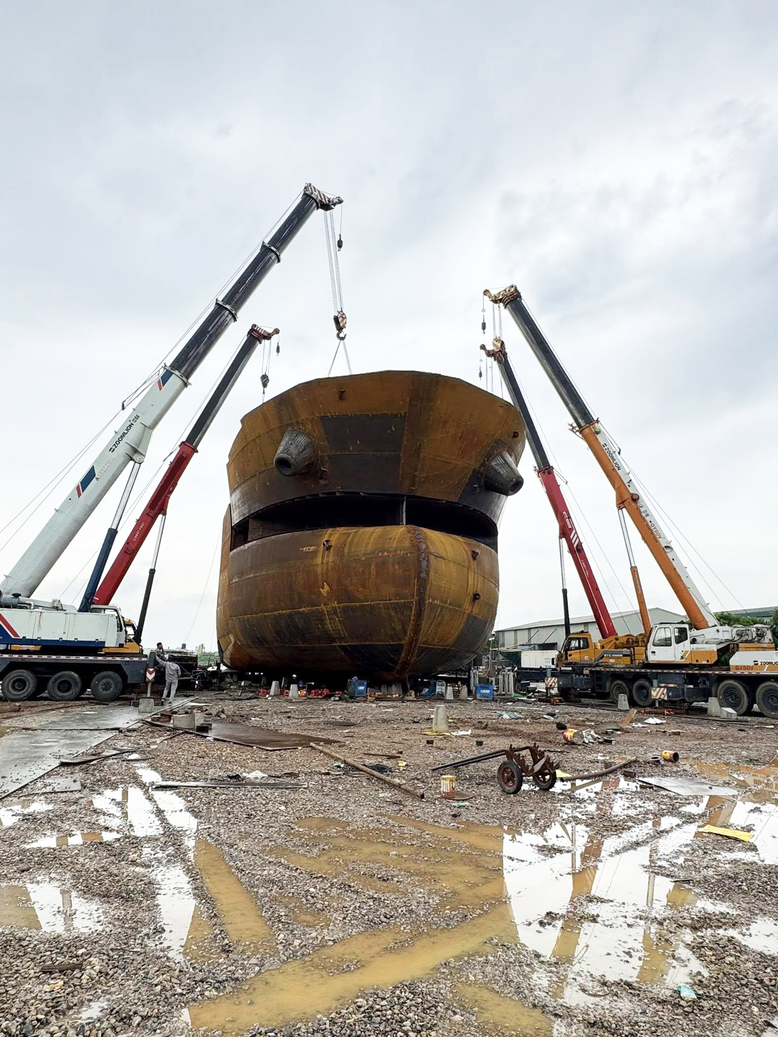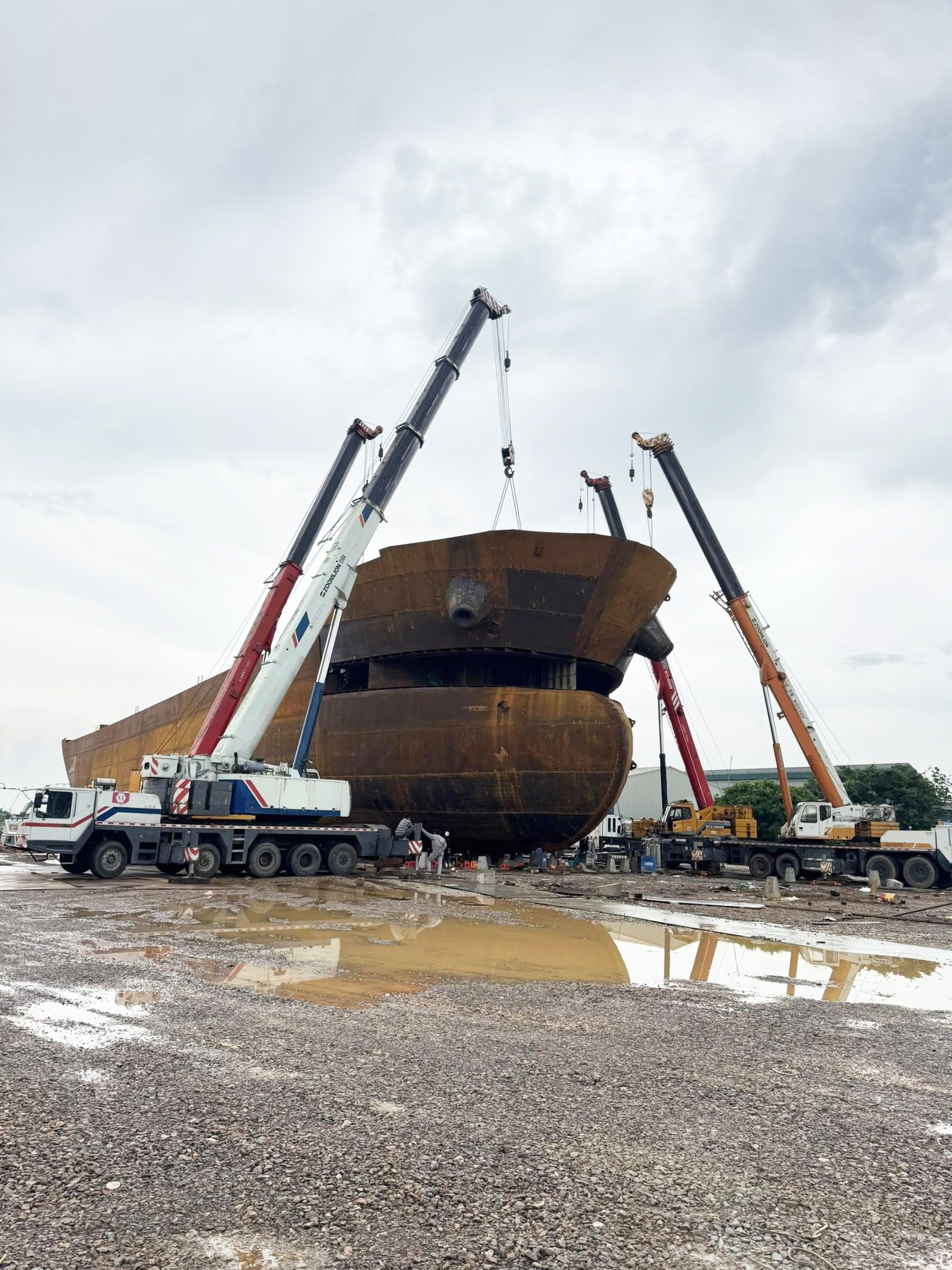 Nhờ ứng dụng xe cẩu chuyên dụng, quá trình đóng tàu tại Ninh Bình được rút ngắn thời gian, đảm bảo tiến độ, hạn chế rủi ro lao động và nâng cao chất lượng công trình, mang lại hiệu quả kinh tế tối ưu cho khách hàng.