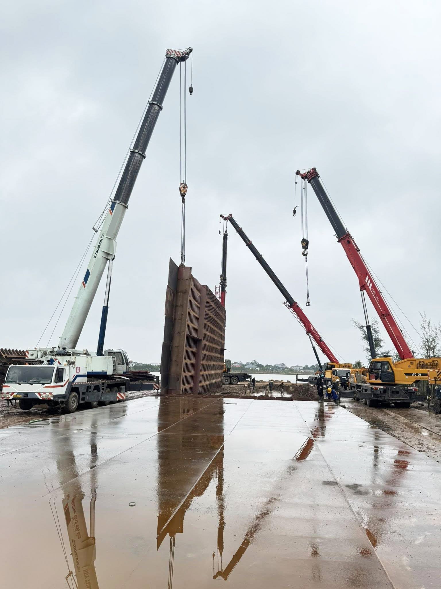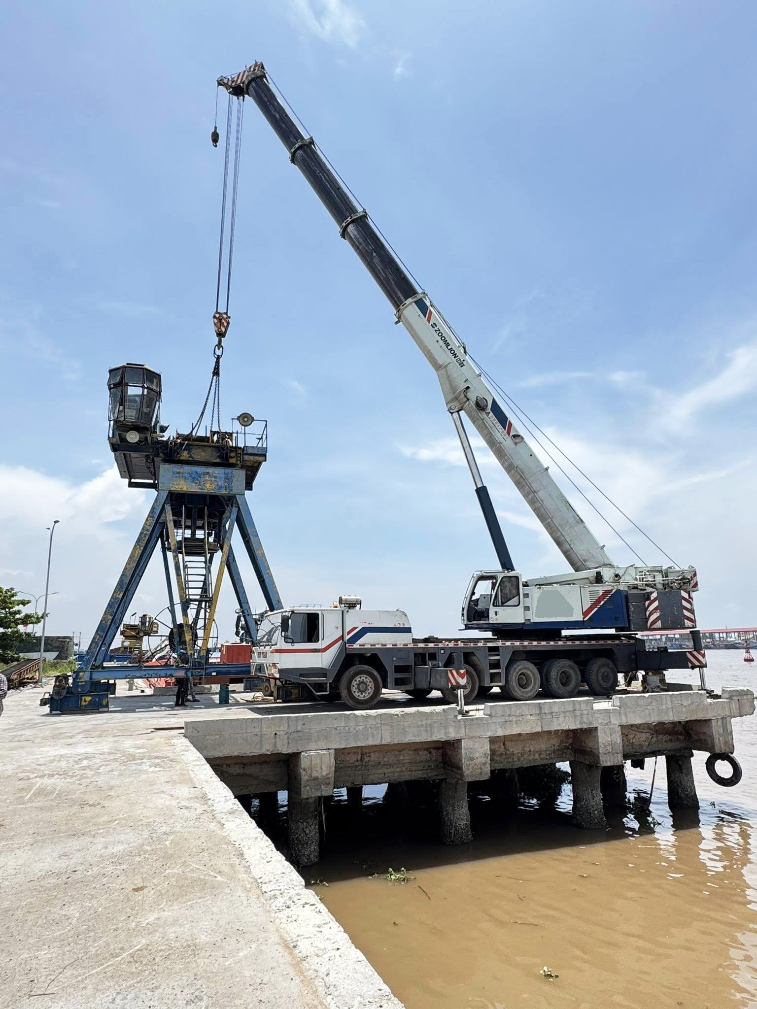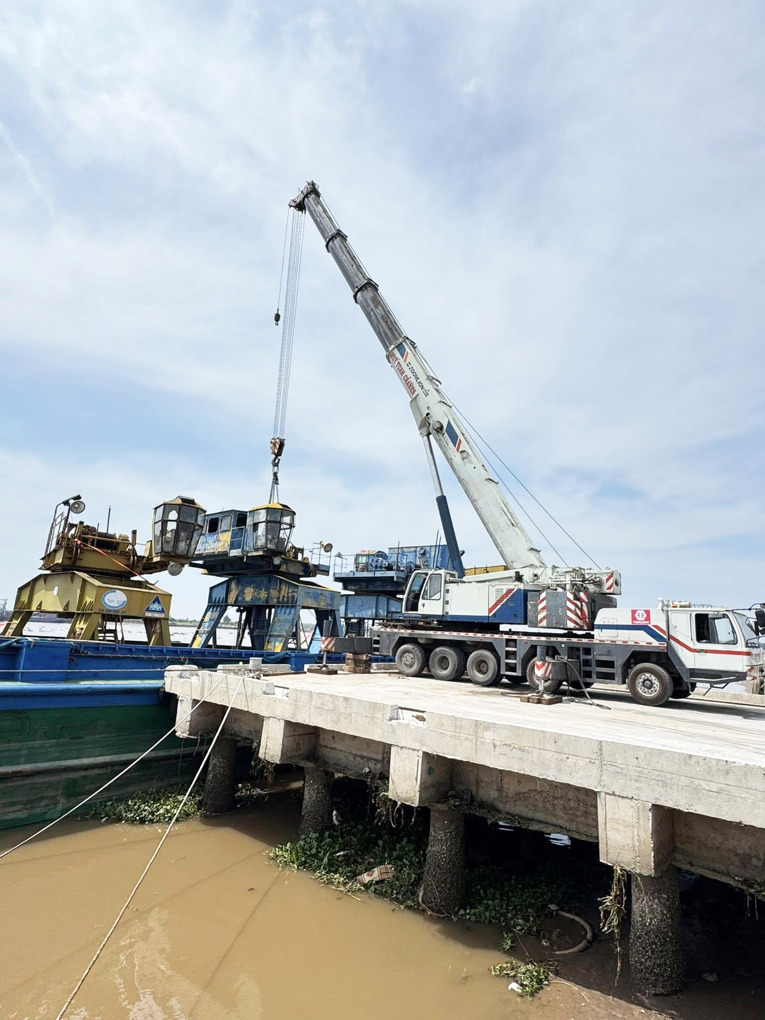 Khu vực đóng tàu thường nằm ven sông, nền đất yếu, do đó cần khảo sát kỹ mặt bằng, gia cố nền và bố trí chân chống cẩu đúng kỹ thuật để đảm bảo xe cẩu hoạt động ổn định.