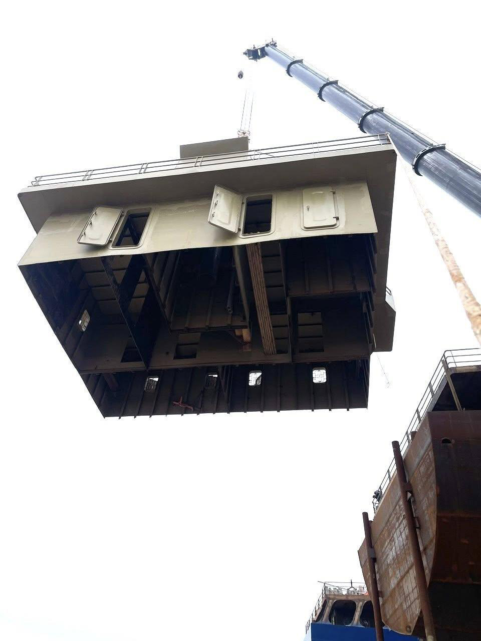 + Lắp đặt nâng hạ, ghép block thân tàu, boong tàu, khoang máy và kết cấu lớn để lắp ghép đúng vị trí thiết kế