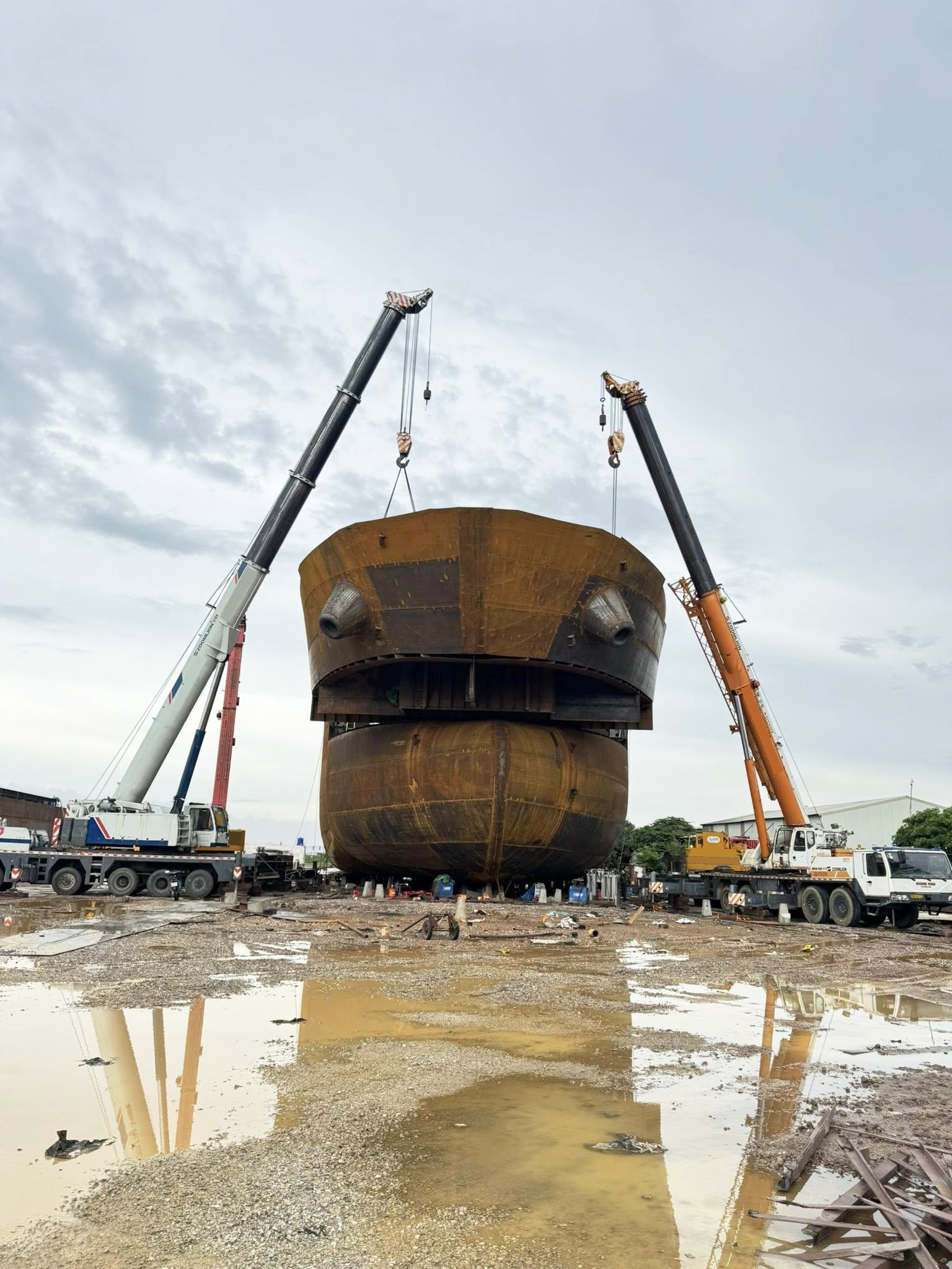 Cần tính toán chính xác trọng lượng thân tàu, block thép, thiết bị máy móc để lựa chọn xe cẩu có tải trọng phù hợp. Không sử dụng xe cẩu quá tải hoặc gần ngưỡng tải tối đa nhằm tránh nguy cơ mất an toàn trong quá trình nâng hạ.