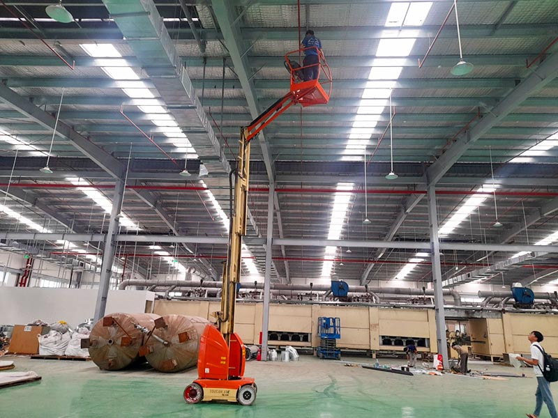 Cho thuê xe nâng người 16m bảo trì, thay thế mái nhà xưởng và hệ thống điện, thông gió tại Điện Biên