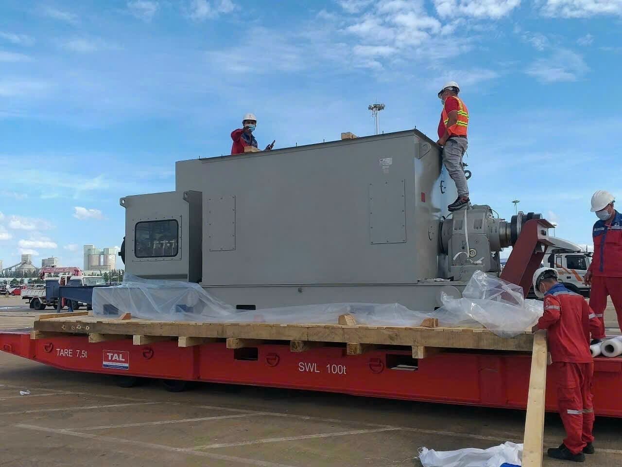 Máy hàn điện, máy cắt bằng khí đá : Phục vụ cho việc hàn cắt các thanh stopper, lashing D-rings trực tiếp lên sàn tàu hoặc container chuyên dụng.