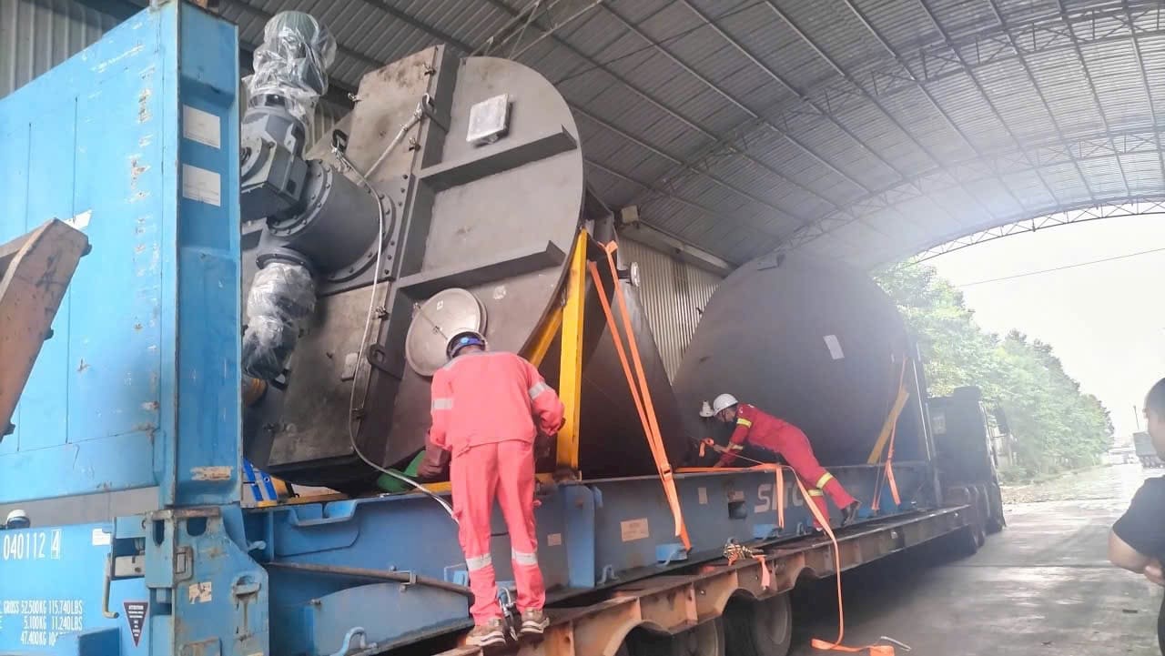 Khung bệ máy, lò hơi, bồn áp lực siêu trường siêu trọng tải trên tàu rời đi Châu Âu.