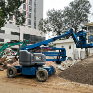 Có nhiều vị trí khó tiếp cận vì vậy đơn vị đã tư vấn khách hàng lựa chọn dòng xe nâng người boom lift dạng cần gấp khúc để tiếp cận vị trí làm việc tốt hơn.