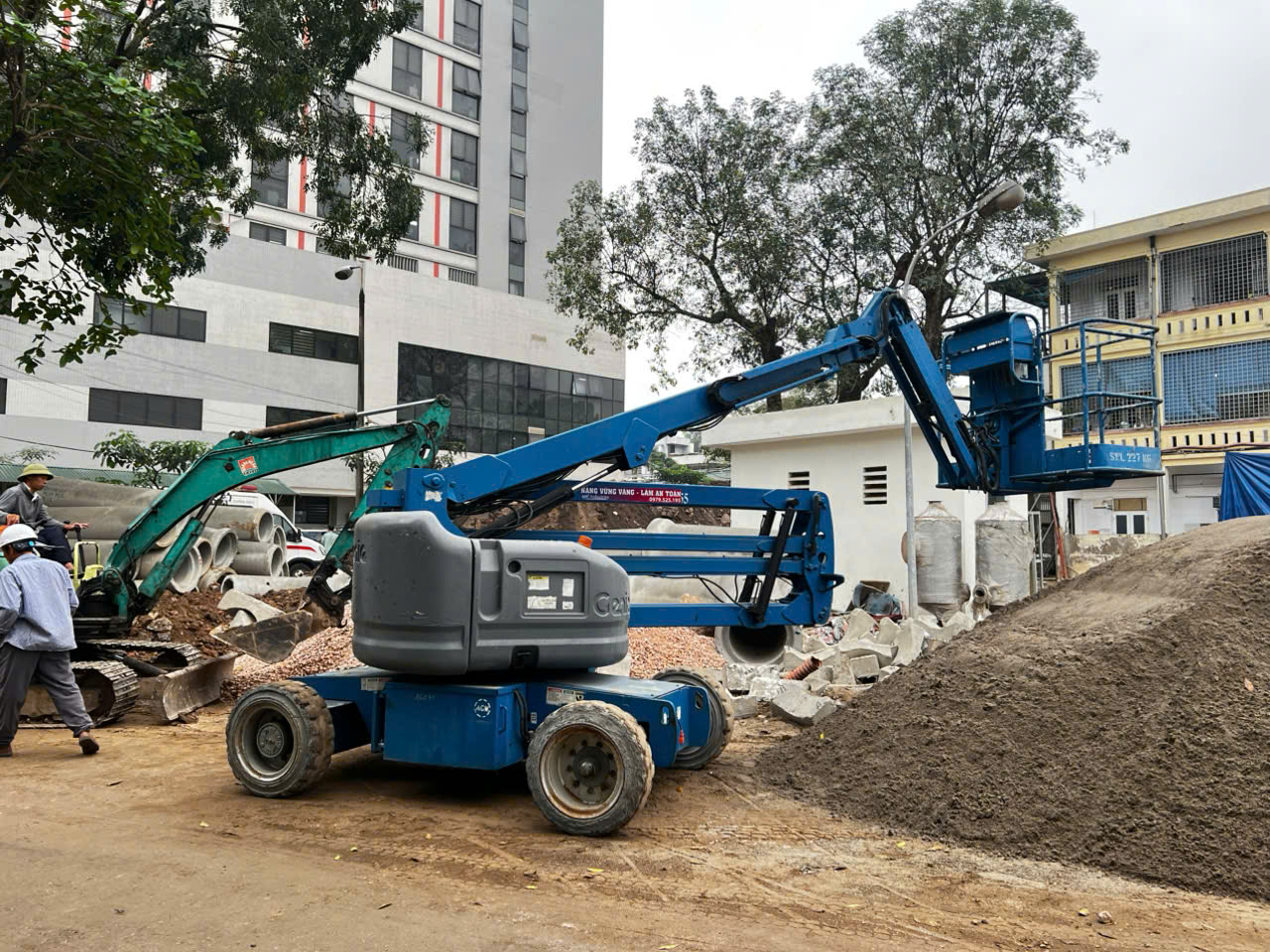 MC Industries cung cấp dịch vụ cho thuê xe nâng người 16m boom lift tại bệnh viện đa khoa Hà Đông
