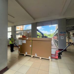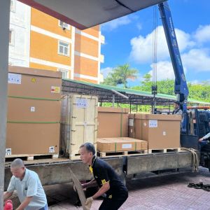 MC Industries cung cấp dịch vụ nâng hạ, di chuyển hàng hóa từ xe vận chuyển vào bệnh viện đa khoa Hà Tĩnh