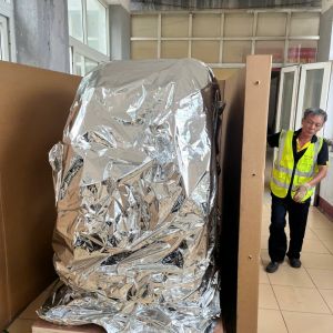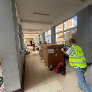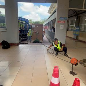 Ngày 16/5/2025 MC Industries thực hiện nâng hạ, di chuyển hàng hóa từ xe vận chuyển vào trong bệnh viện đa khoa Hà Tĩnh.