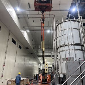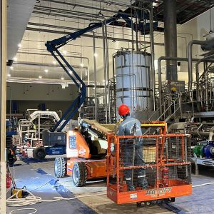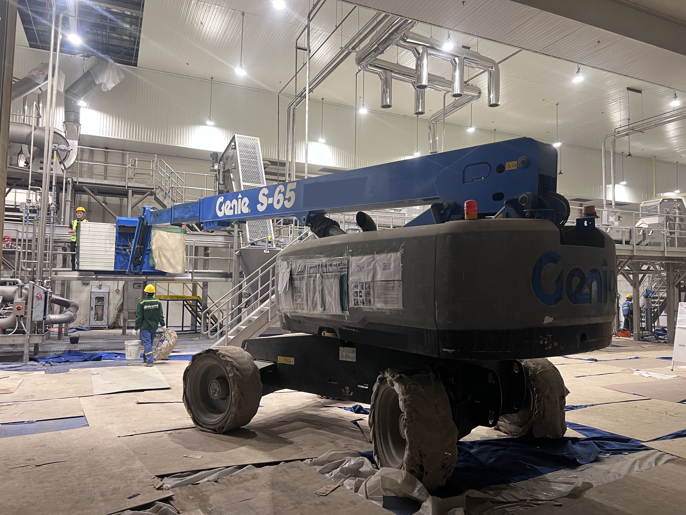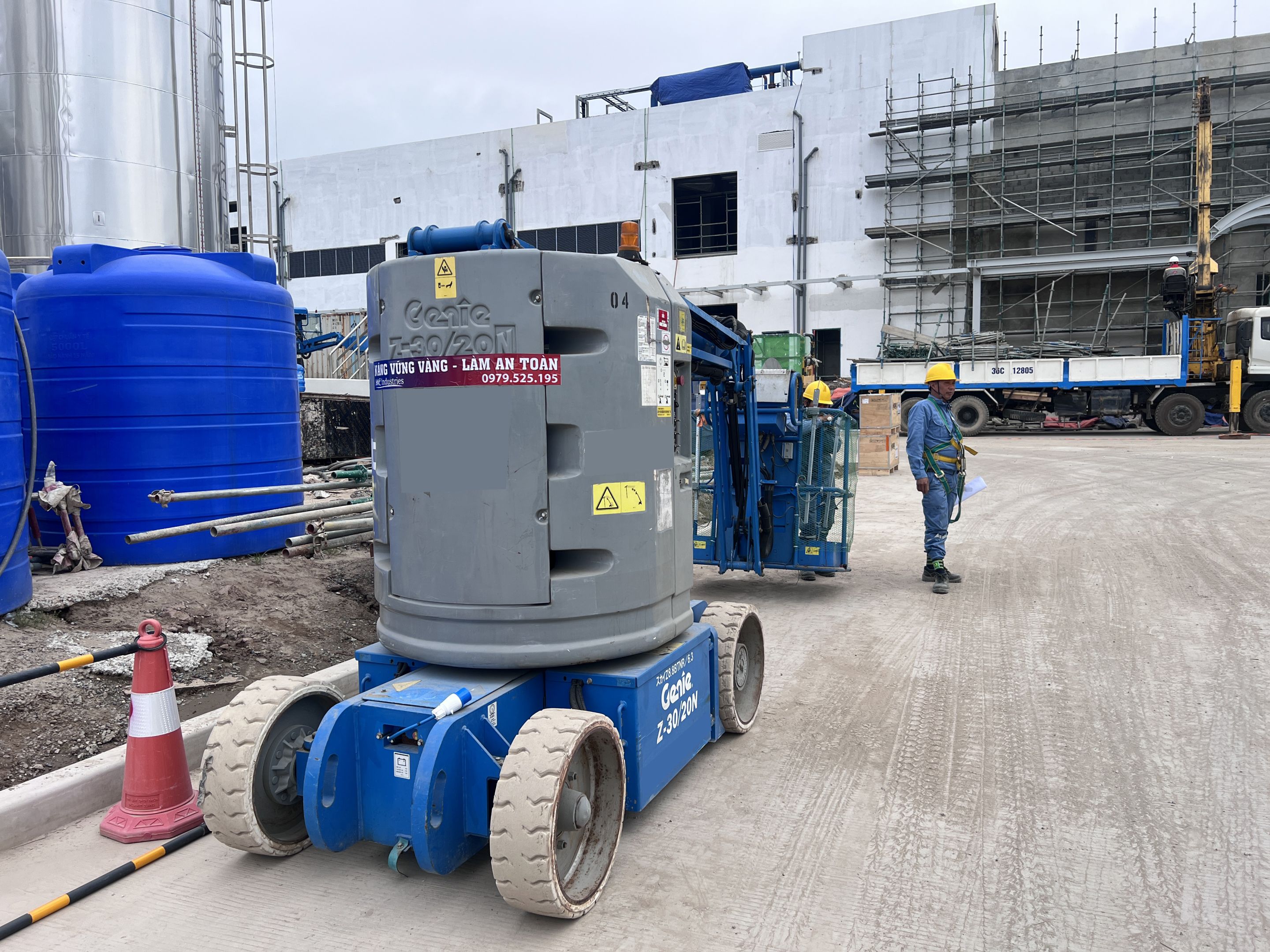 Khách hàng liên hệ đến MC Industries cần thuê xe nâng người boom lift để lắp đặt hệ thống chiết xuất và dây truyền đóng gói lon nước ngọt tại nhà máy.
