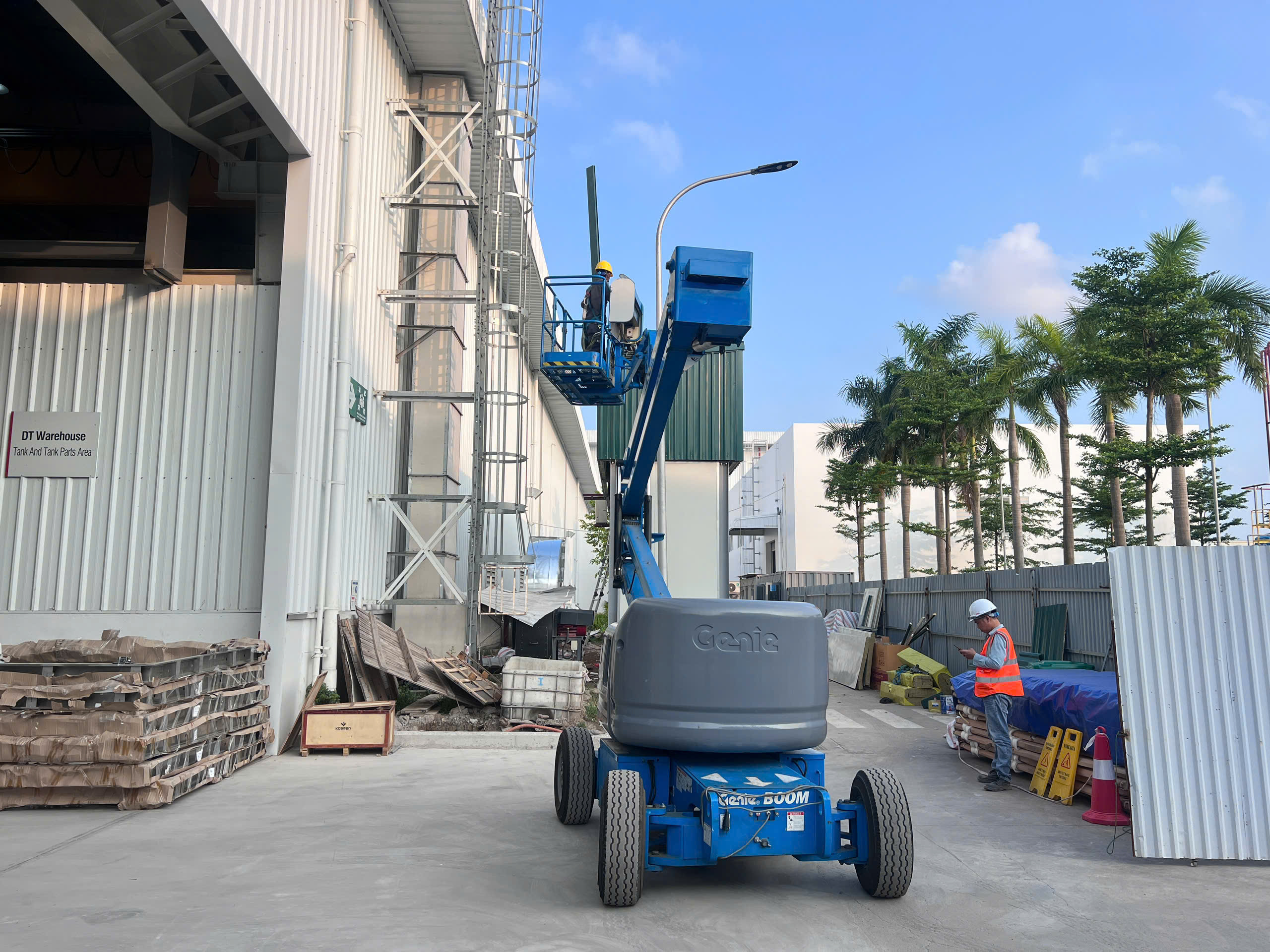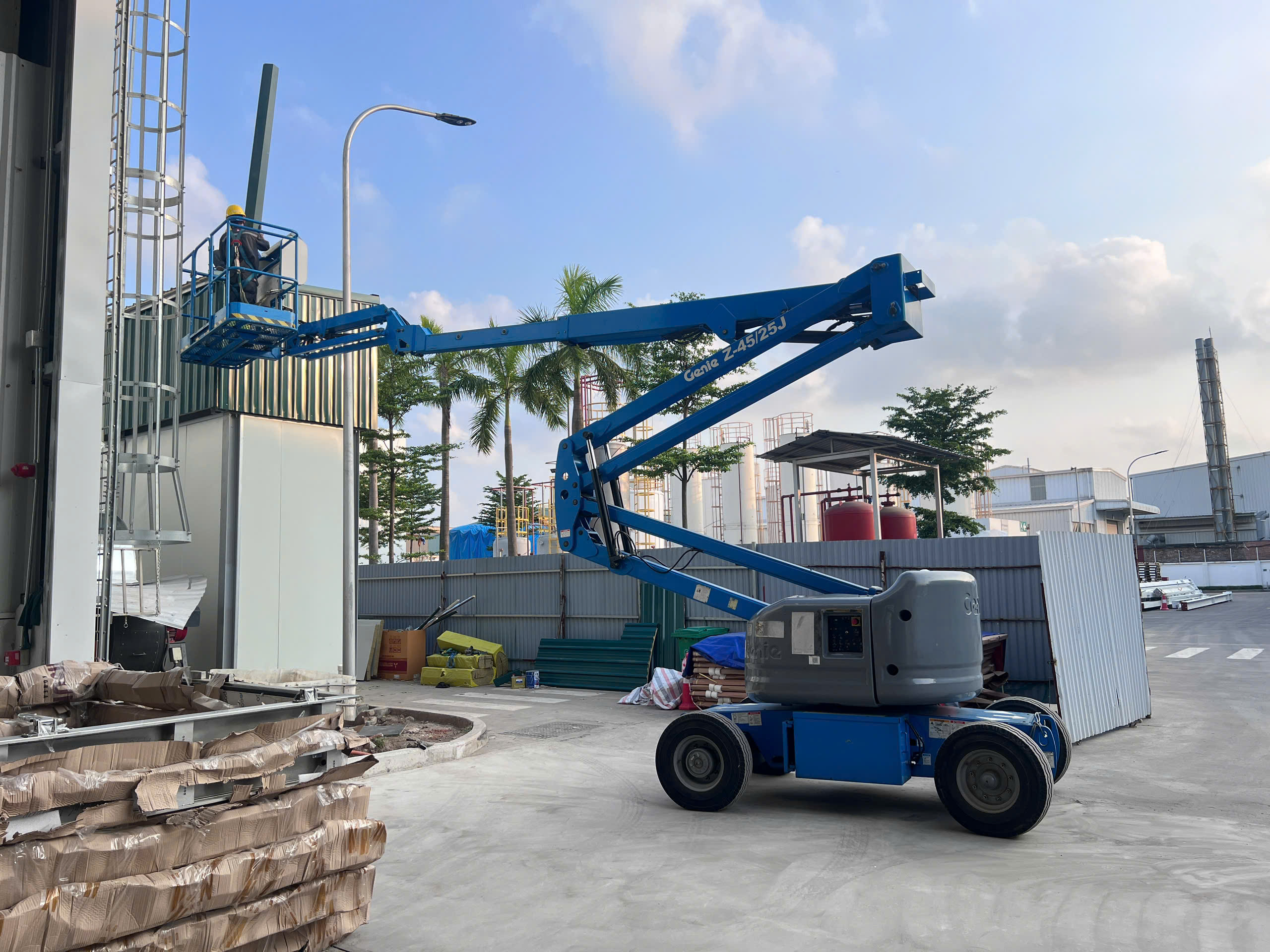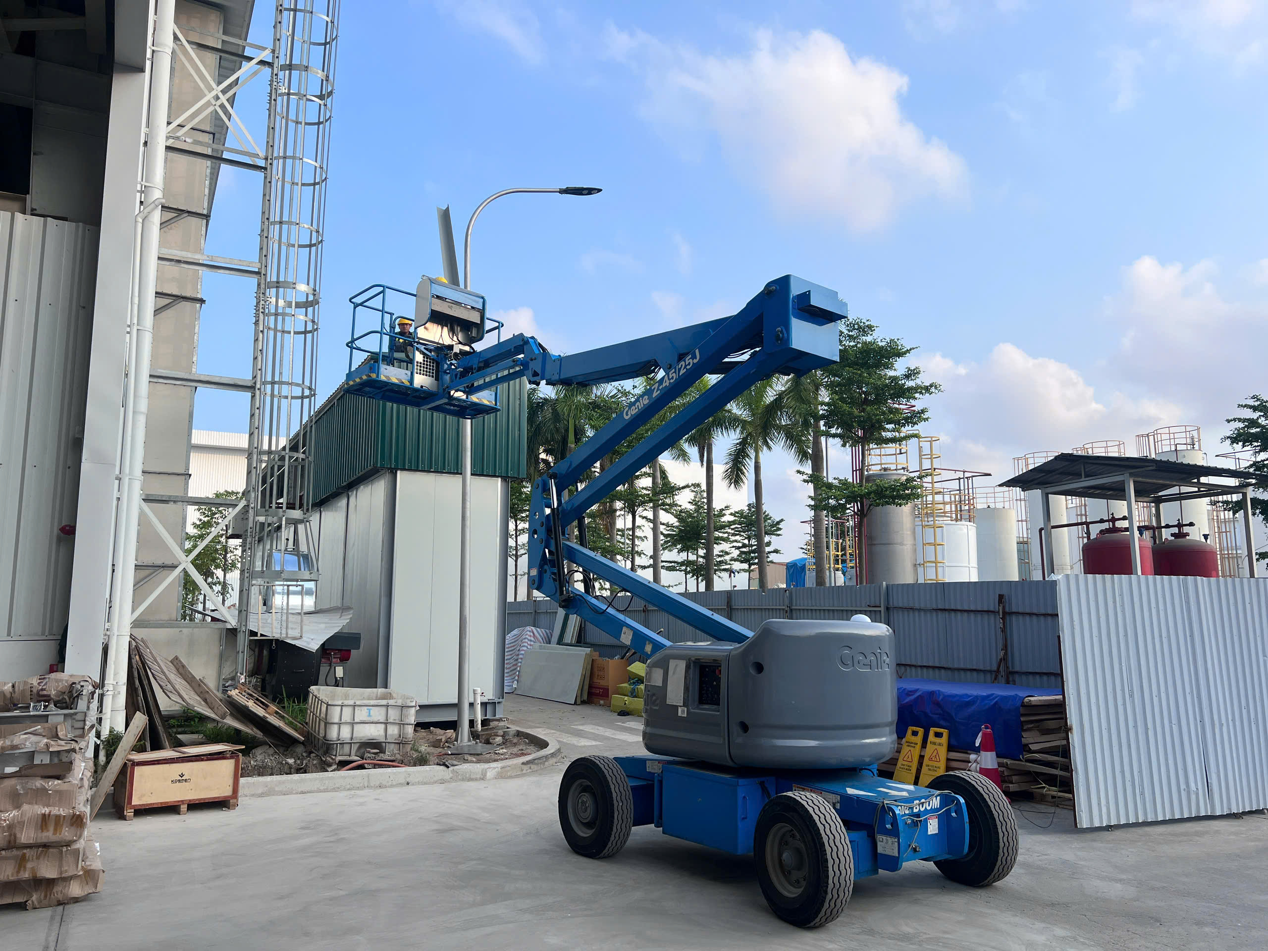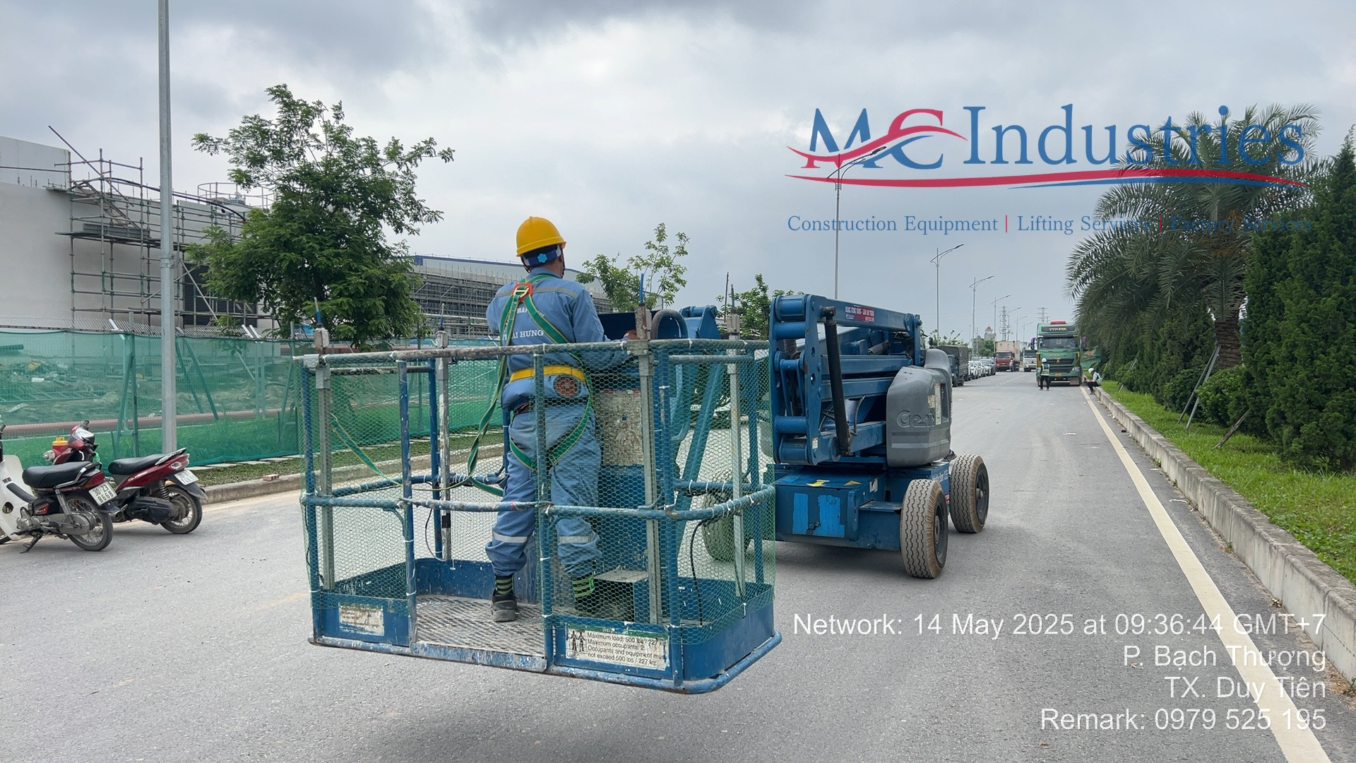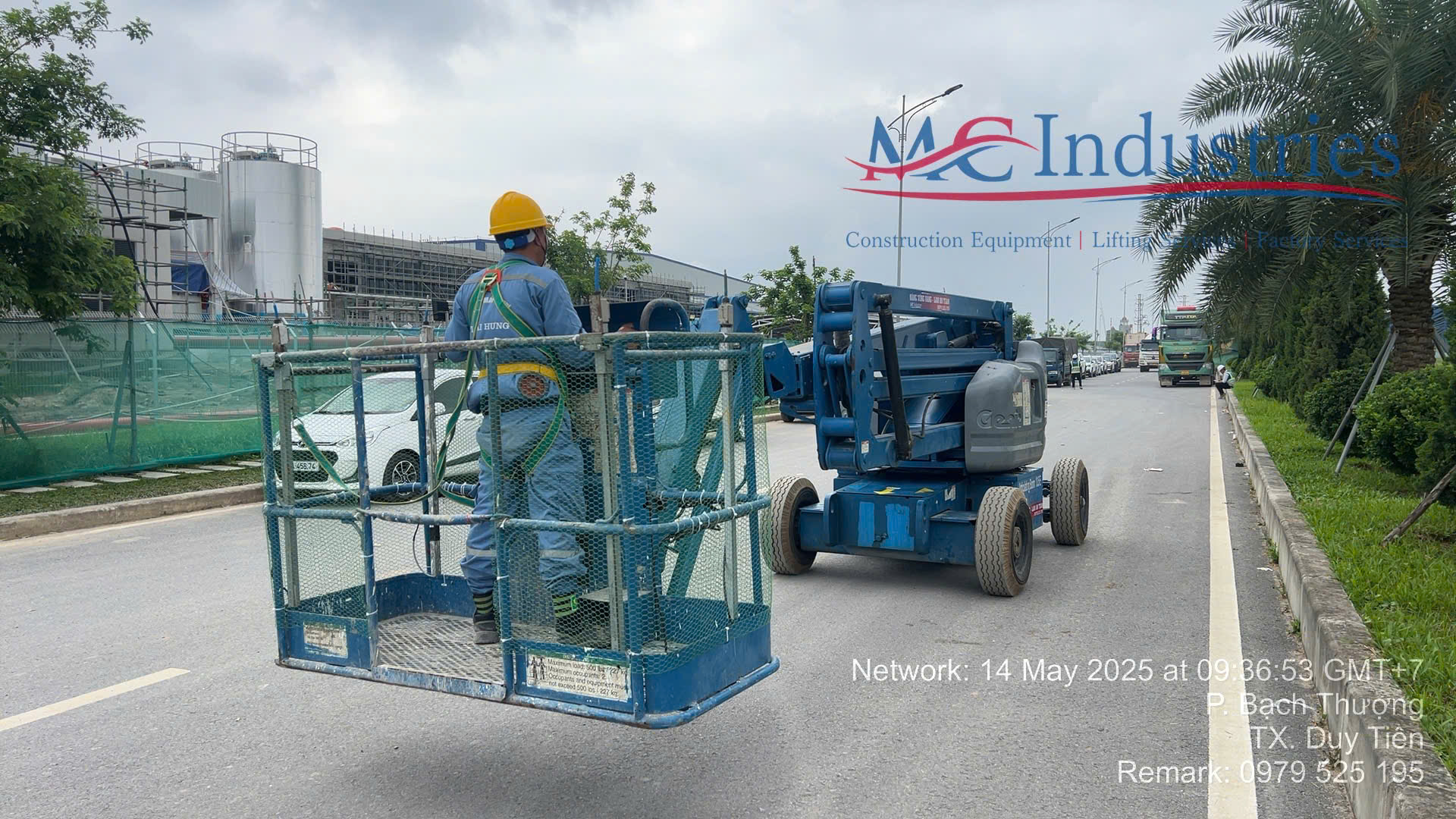 Ngày 14/5/2025 MC cung cấp xe nâng người 16m boom lift Genie phục vụ công tác lắp đặt pannel nhà máy đang xây dựng. Ngoài việc lắp đặt pannel đơn vị sử dụng lắp đặt kết cấu, lắp kinh cho nhà máy đang xây dựng.
