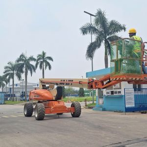 MC Industries cho thuê xe nâng người boom lift 16m JLG 450AJ cho nhà máy nước ngọt Pepsico KCN Platchem Hà Nam