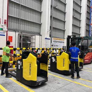 Trong 7 xe nâng hàng trên bao gồm 4 xe nâng hàng có tải trọng nâng 2 tấn – 2.5 tấn dòng ngồi lái, 3 xe nâng hàng đứng lái tải trọng nâng 2 tấn. Tất cả các xe đều là xe chạy điện. Xe nâng hàng chạy điện đảm bảo yêu cầu làm việc trong nhà máy không gây ô nhiễm môi trường làm việc.