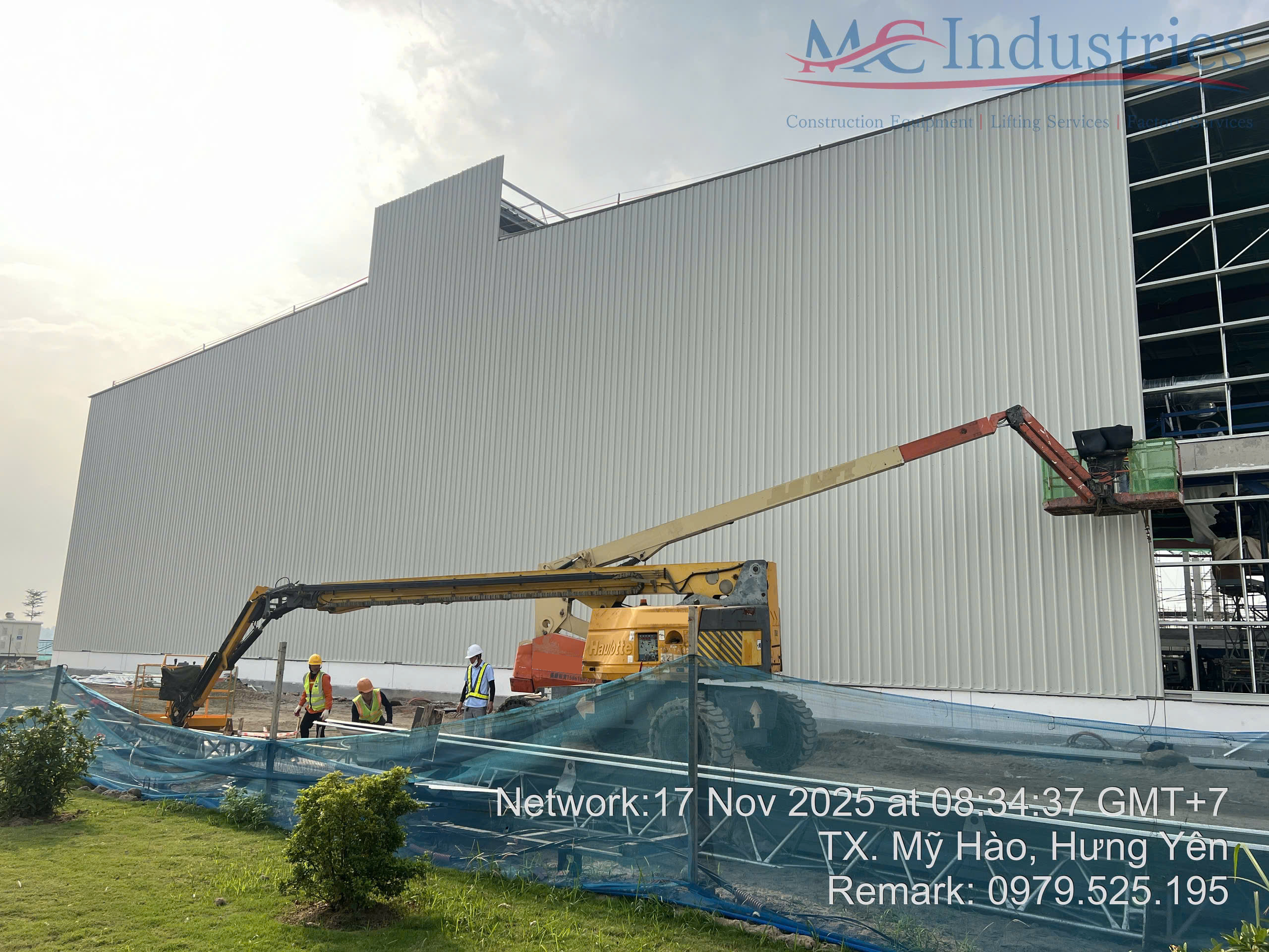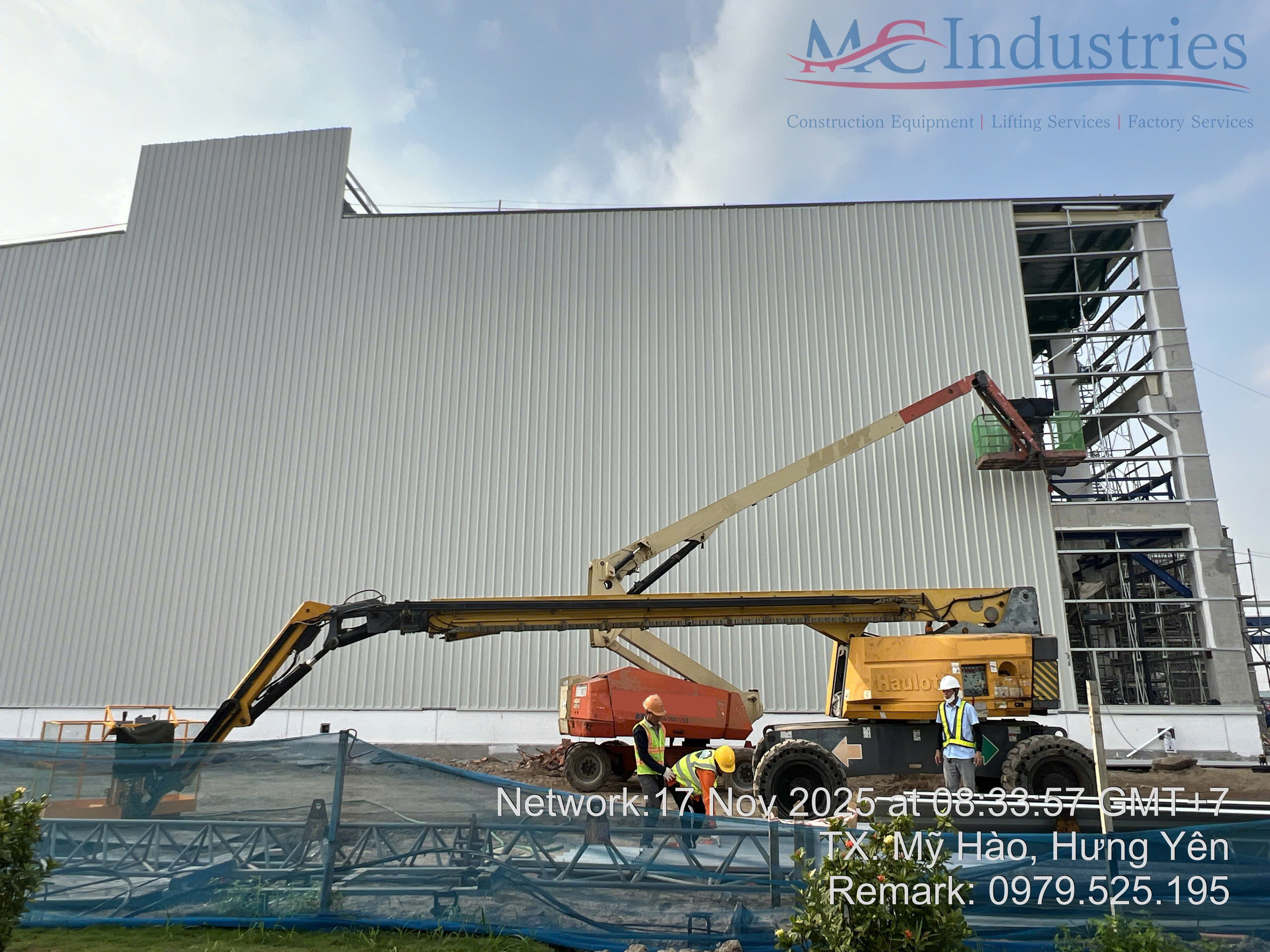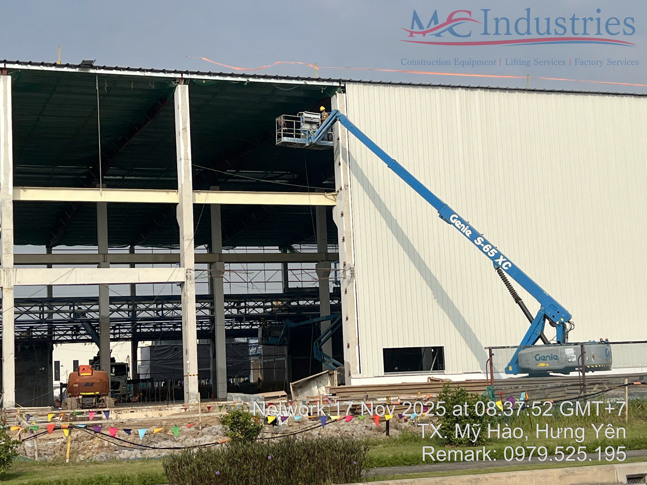 Ngày 17/11/2025 MC Industries cung cấp 3 xe nâng người boom lift phục vụ xây dựng nhà máy Parker Processing tại Hưng Yên.