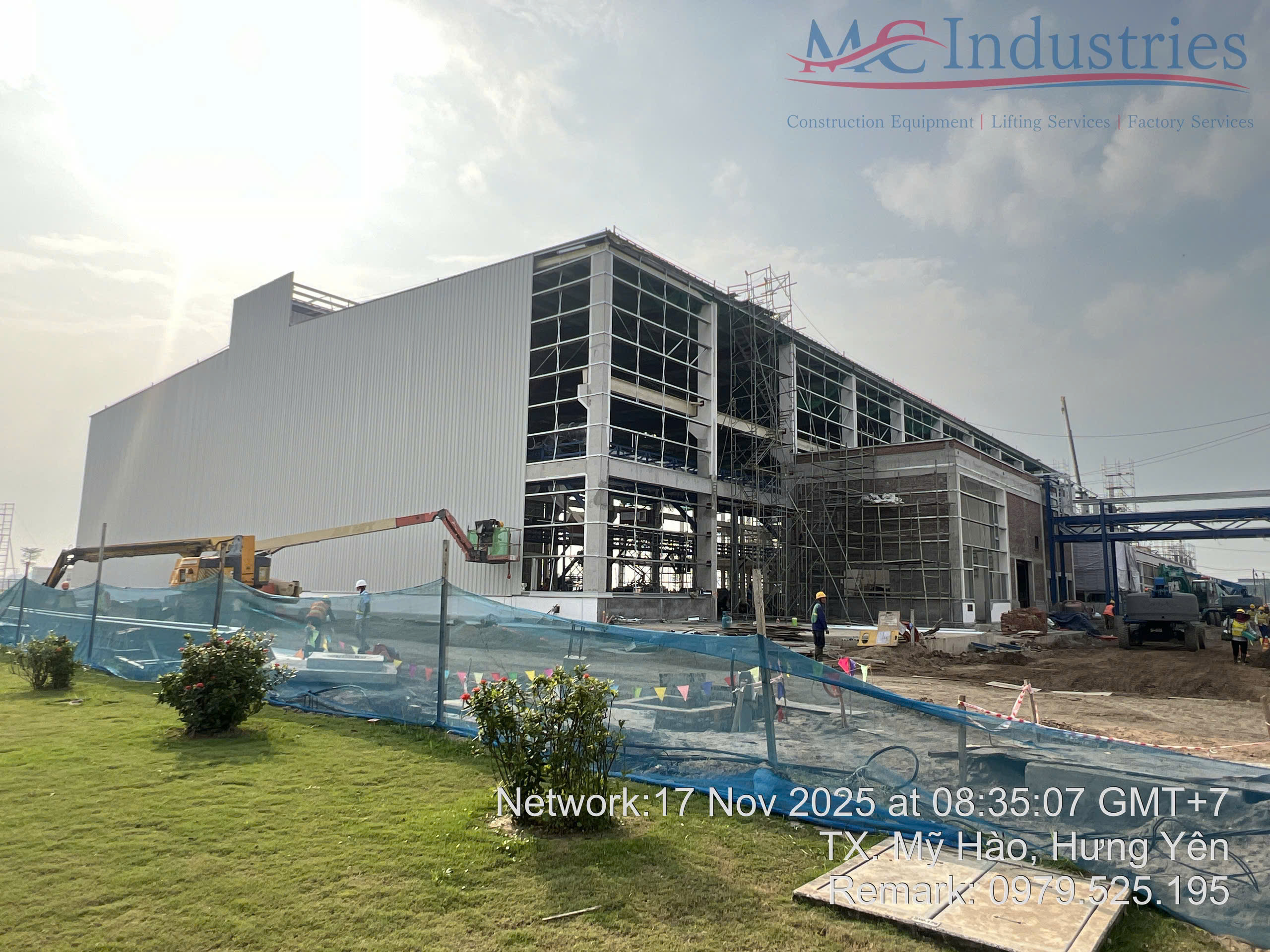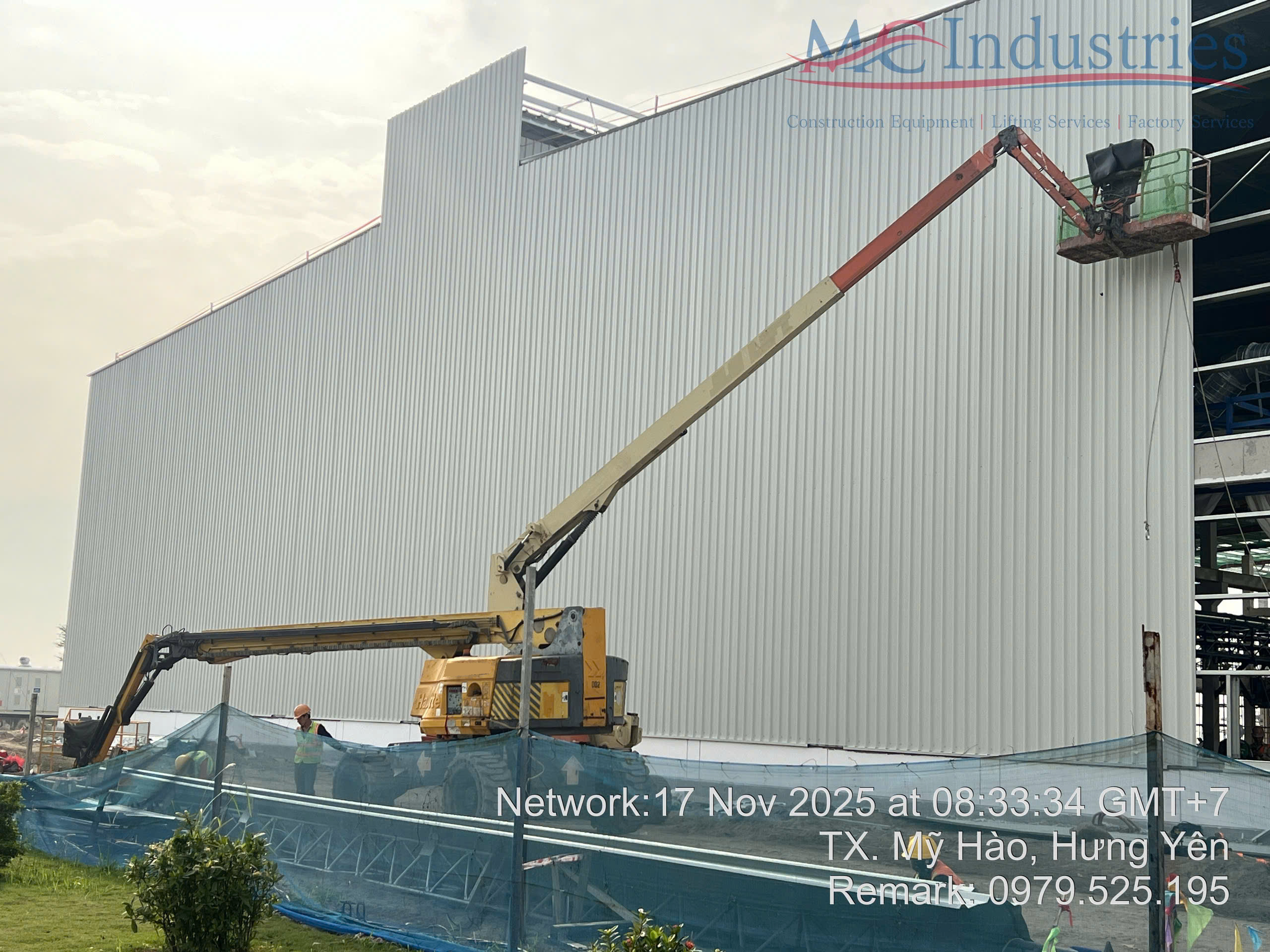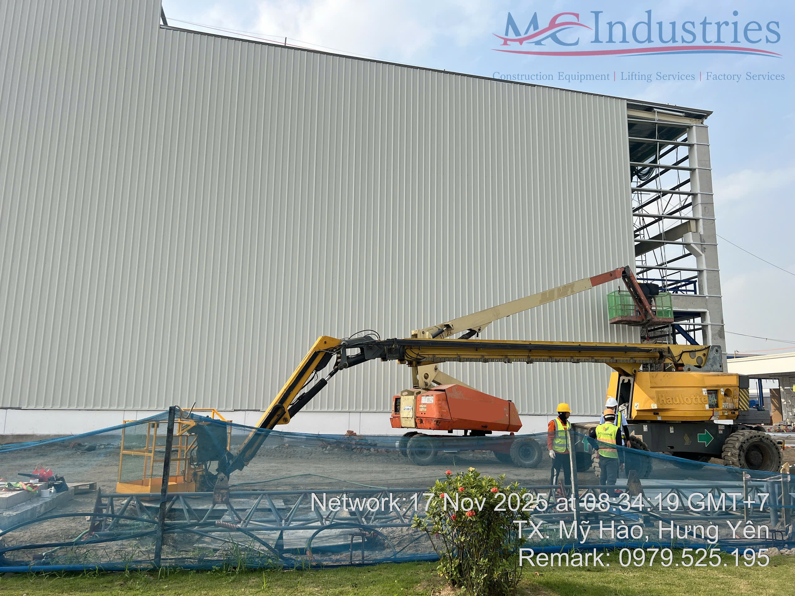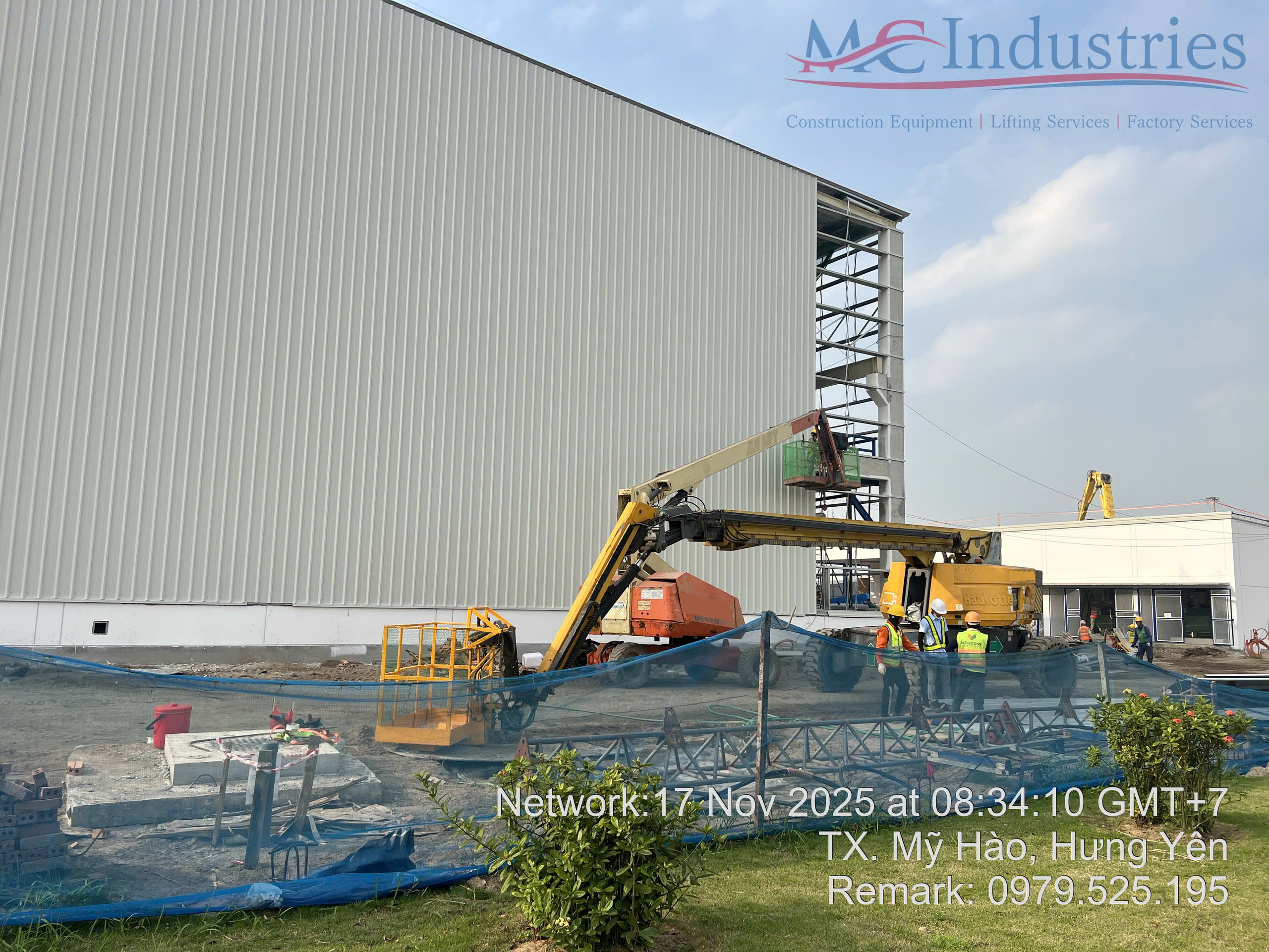 Ngày 17/11/2025 MC Industries cung cấp 3 xe nâng người boom lift phục vụ xây dựng nhà máy Parker Processing tại Hưng Yên.