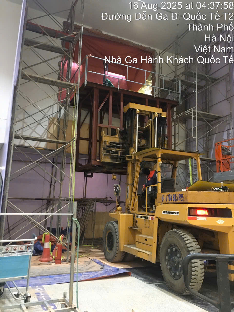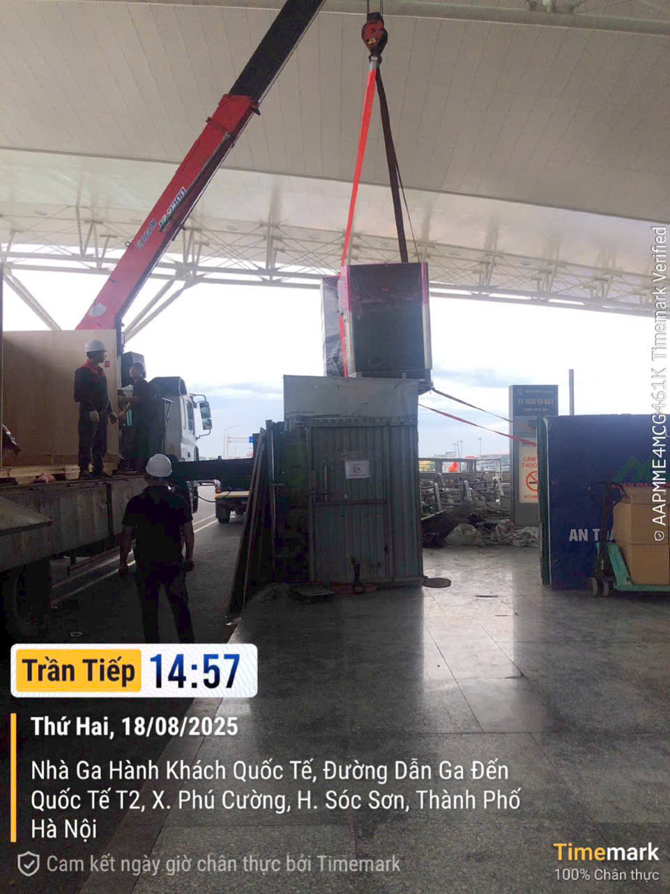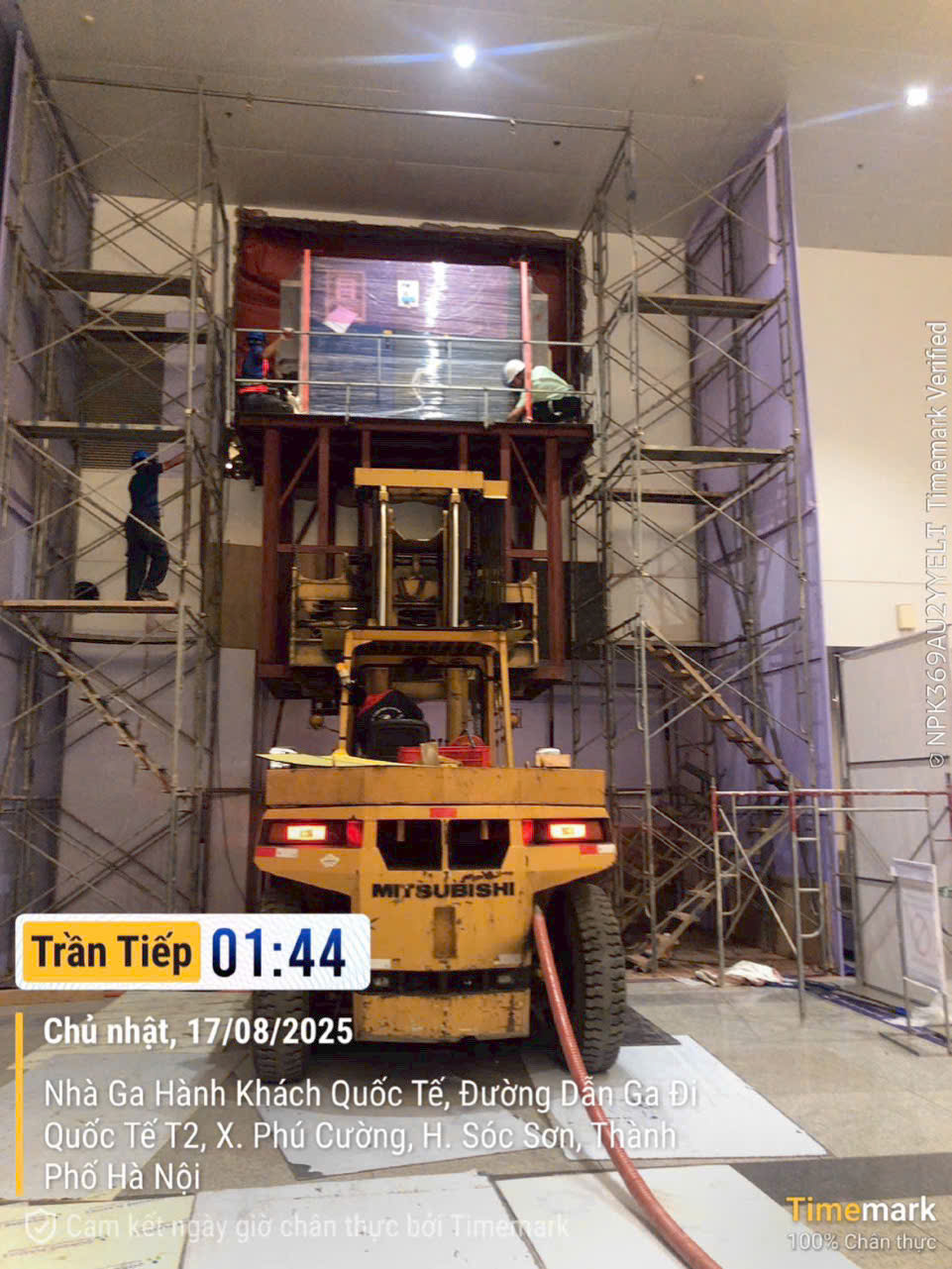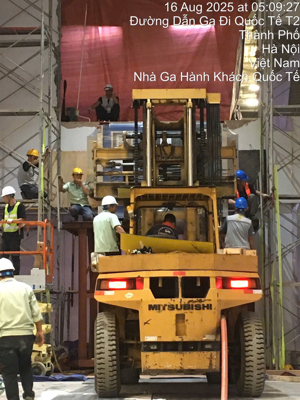 Ngày 18/8/2025 MC Industries cung cấp dịch vụ nâng hạ máy móc cho Công ty TNHH Tiếp vận Nội Bài tại sân bay Nội Bài Hà Nội.