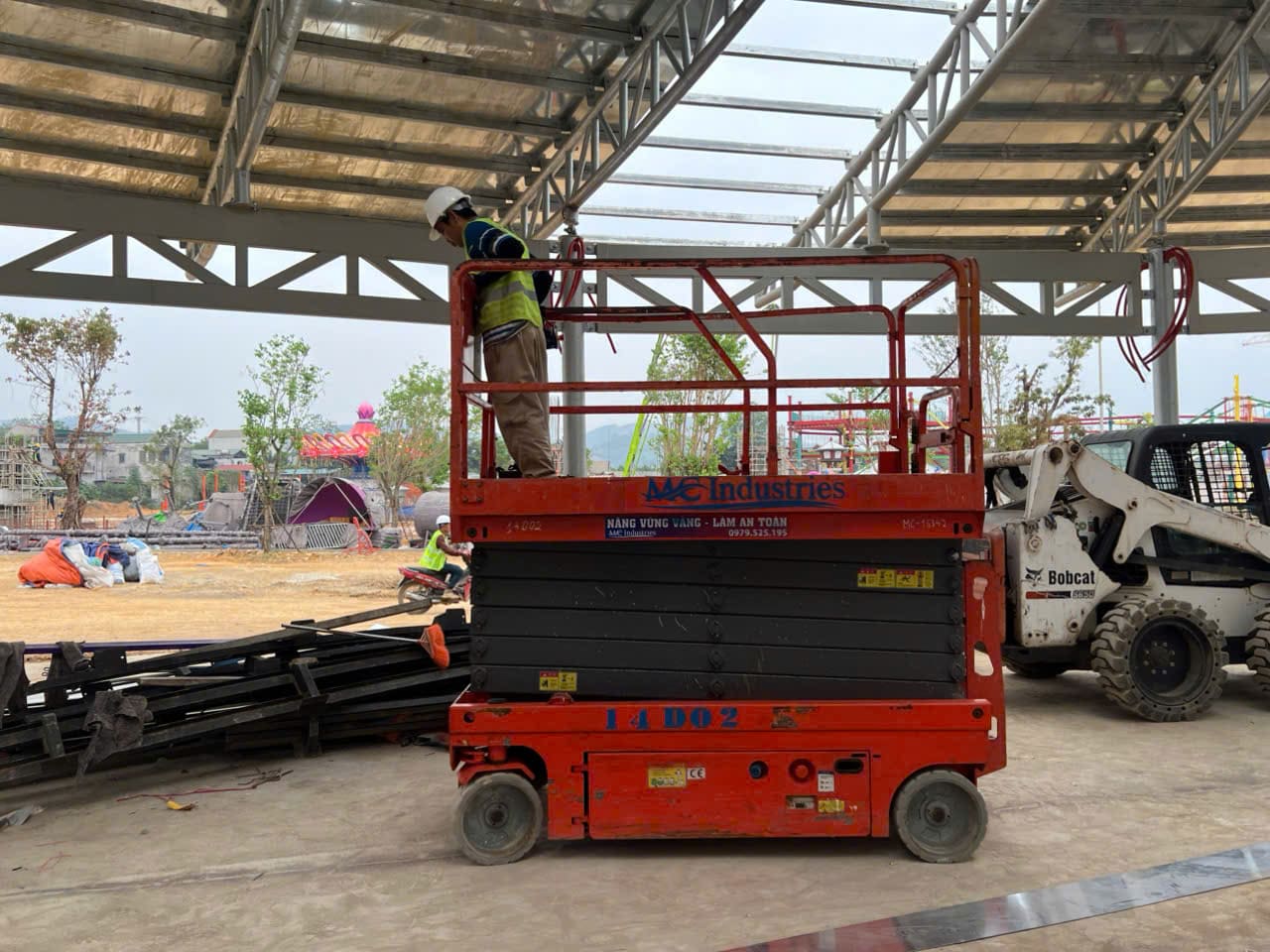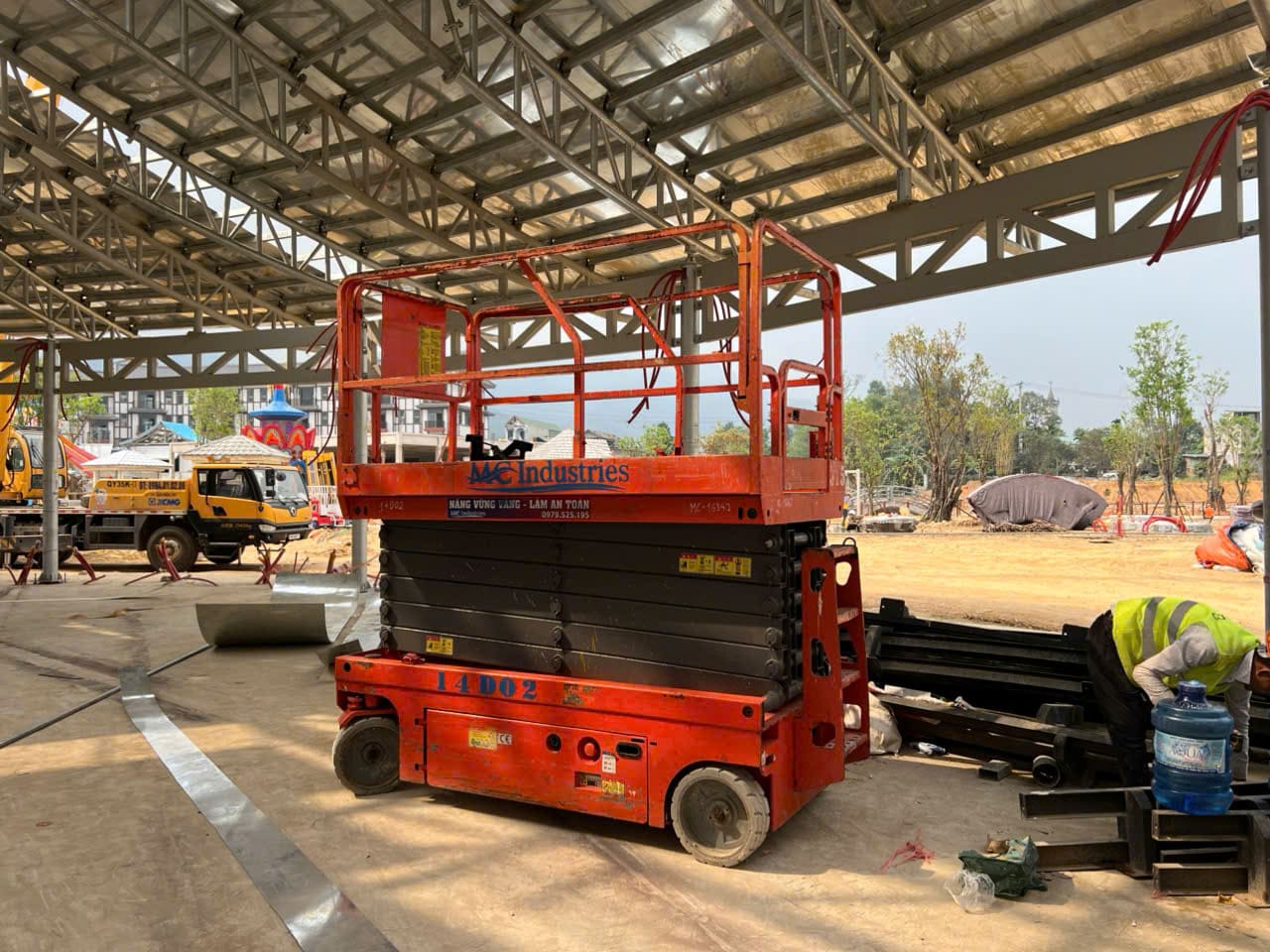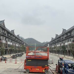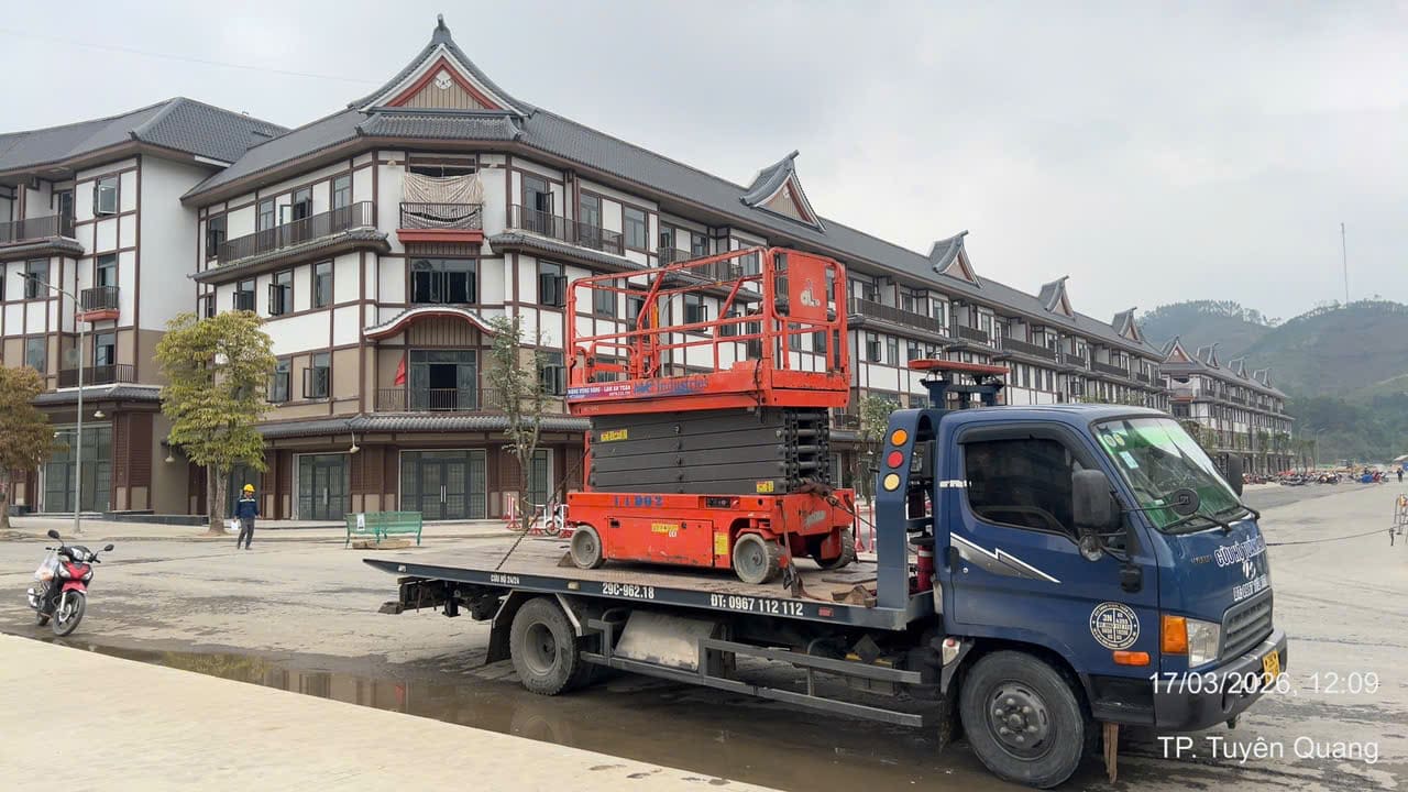Ngày 17/3/2026 MC Industries cung cấp cho thuê xe nâng người cắt kéo 14m điện và xe cẩu lốp 35 tấn phục vụ dự án xây dựng của Vin tại Tuyên Quang.