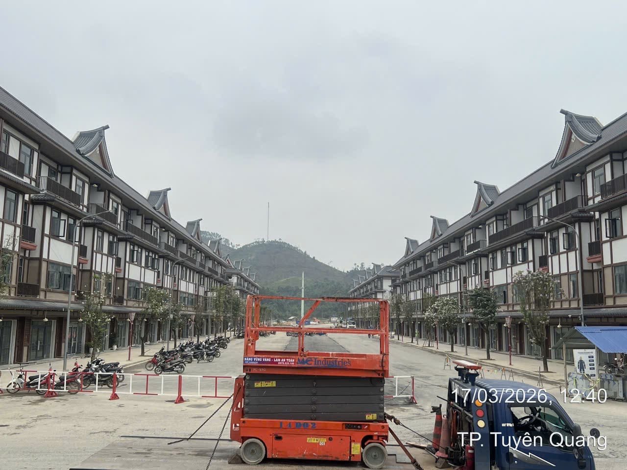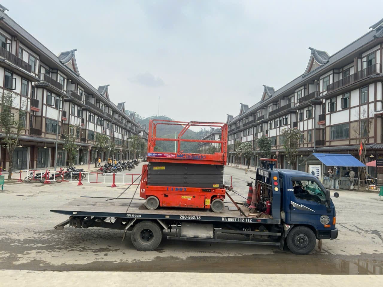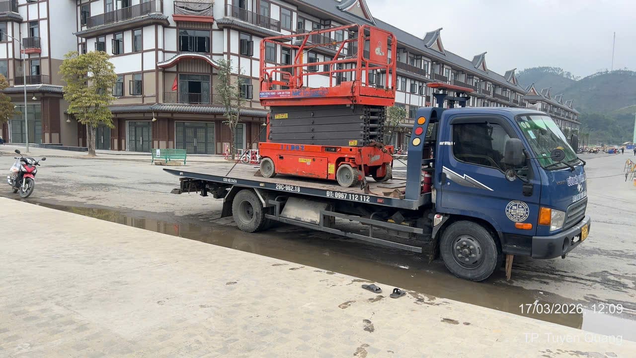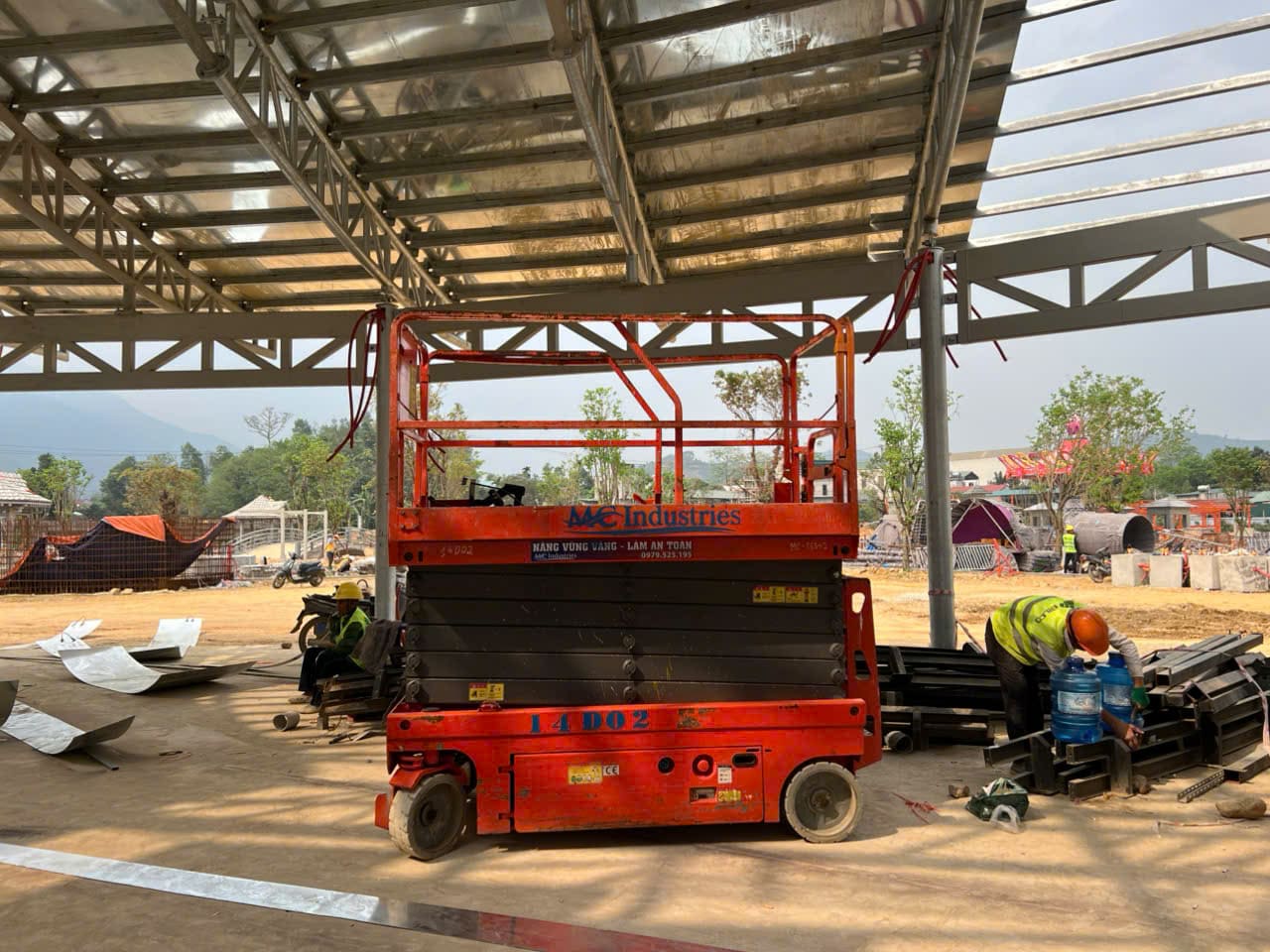 Ngày 17/3/2026 MC Industries cung cấp cho thuê xe nâng người cắt kéo 14m điện và xe cẩu lốp 35 tấn phục vụ dự án xây dựng của Vin tại Tuyên Quang.