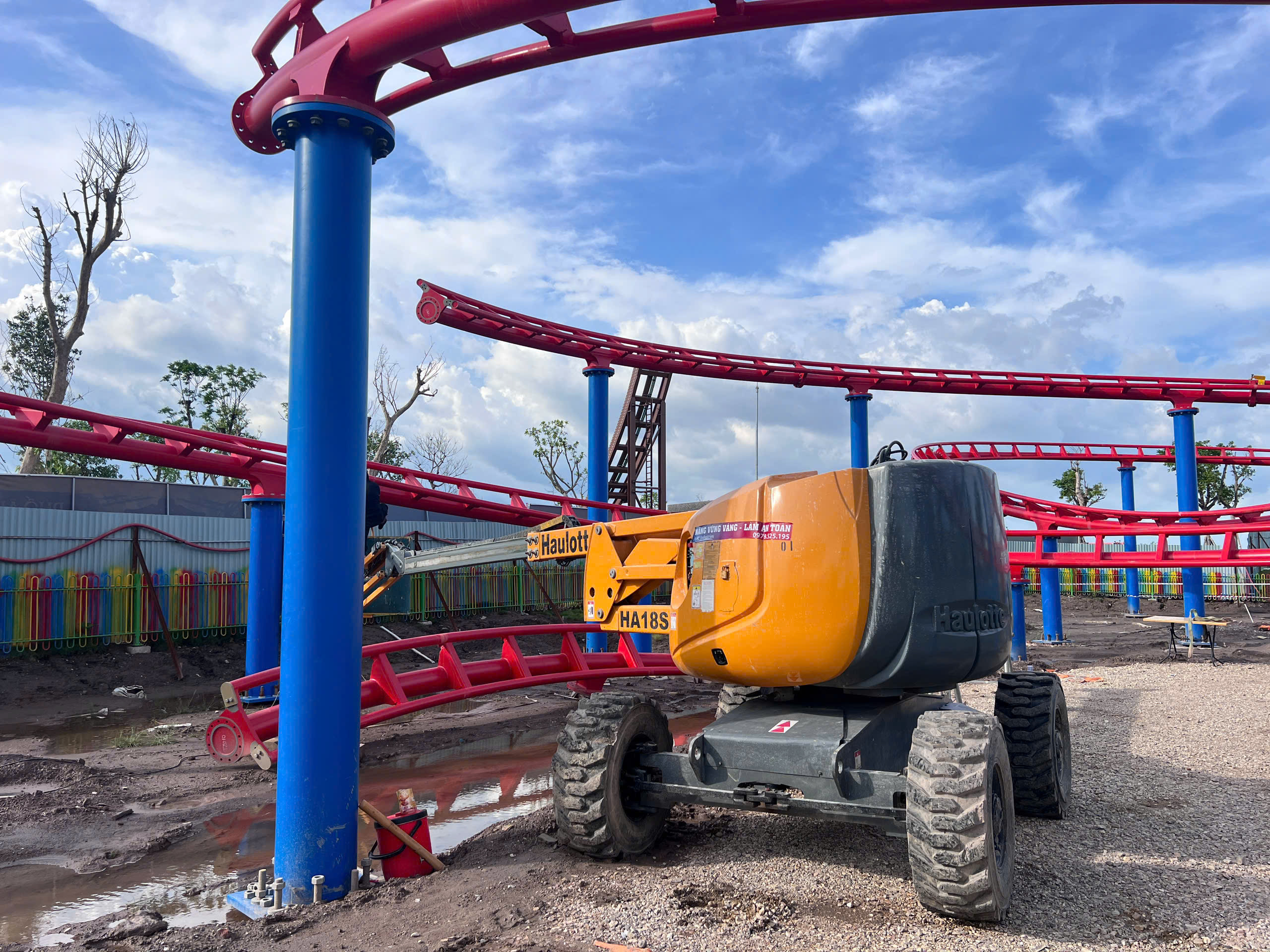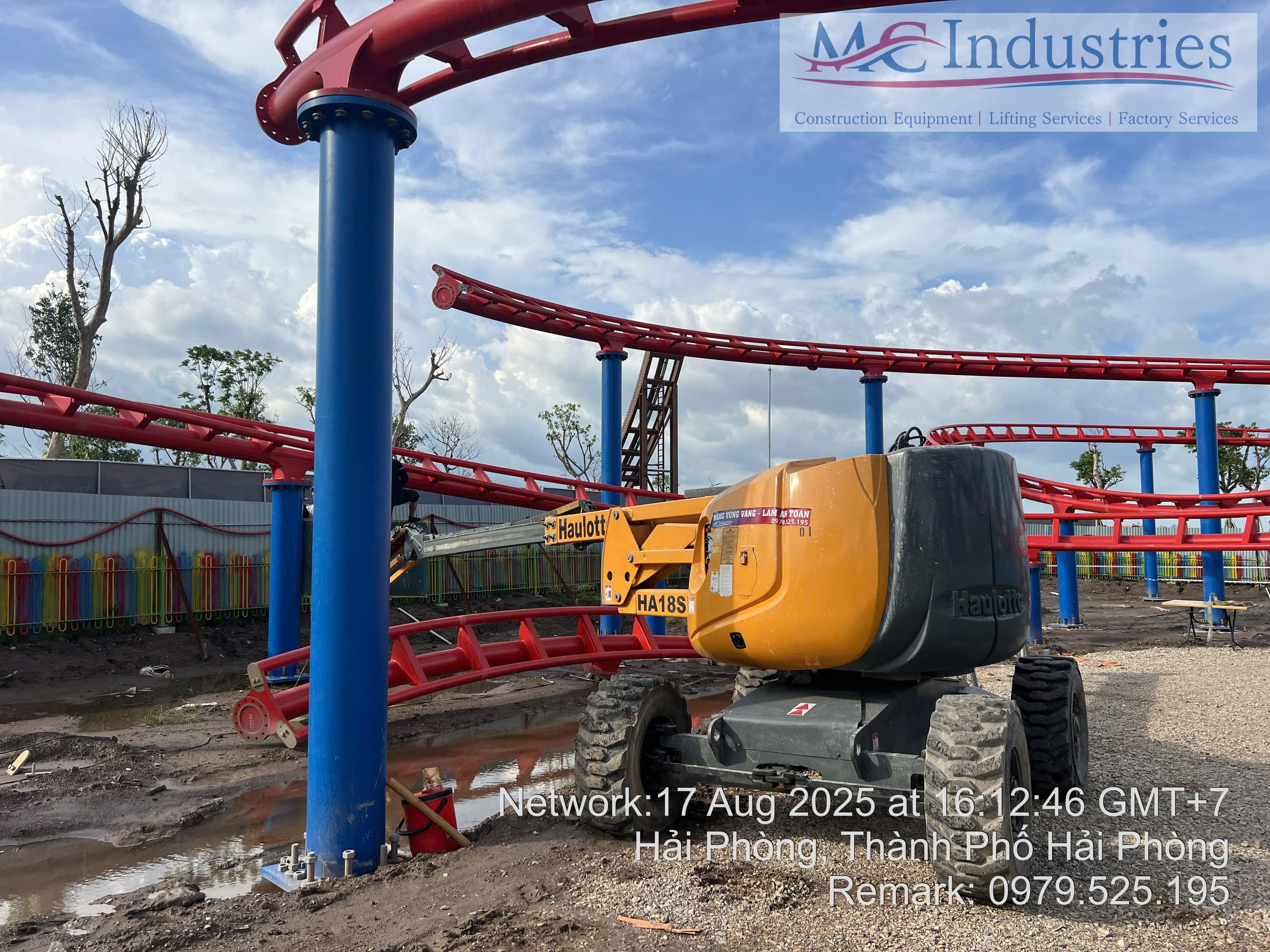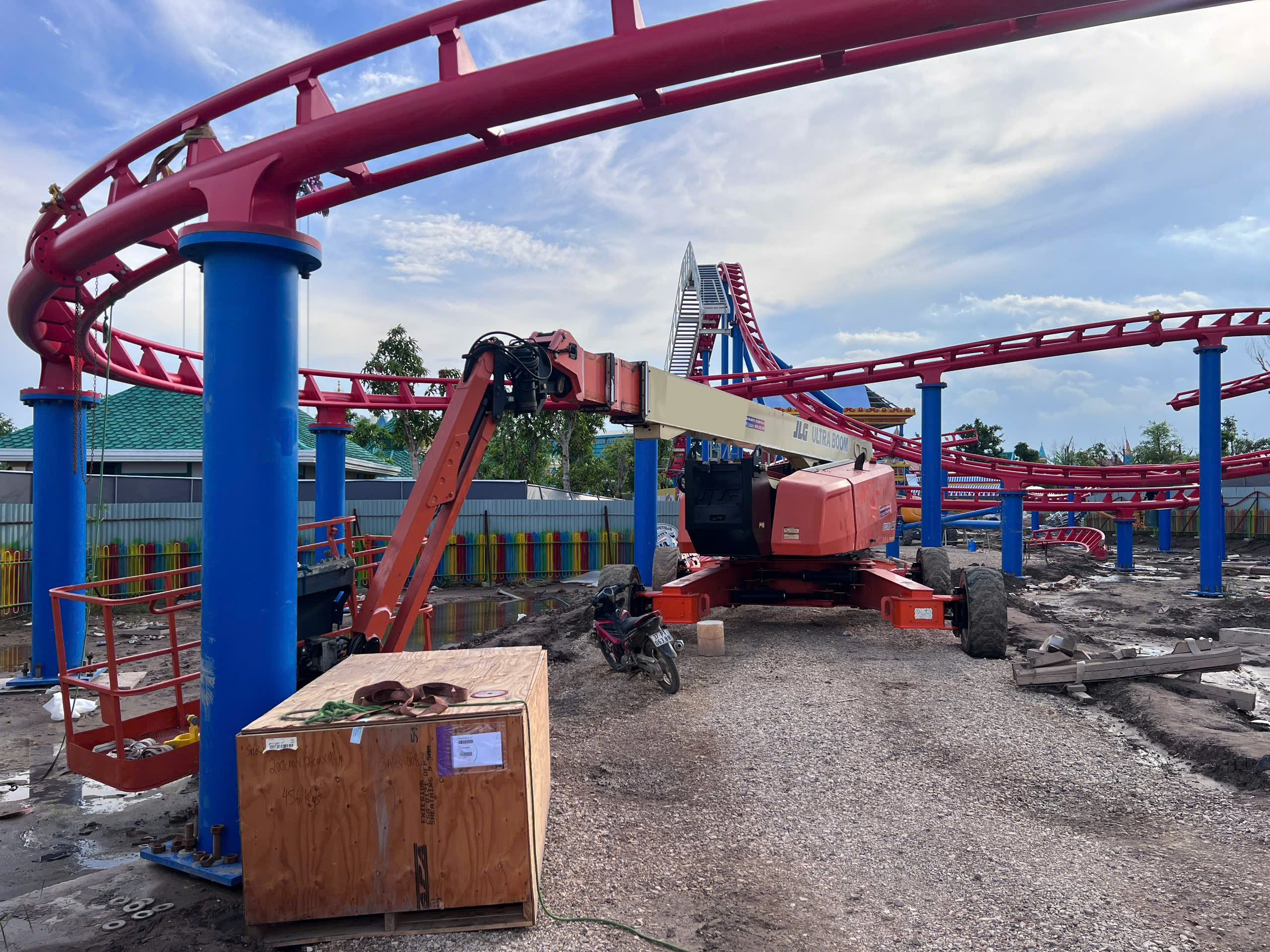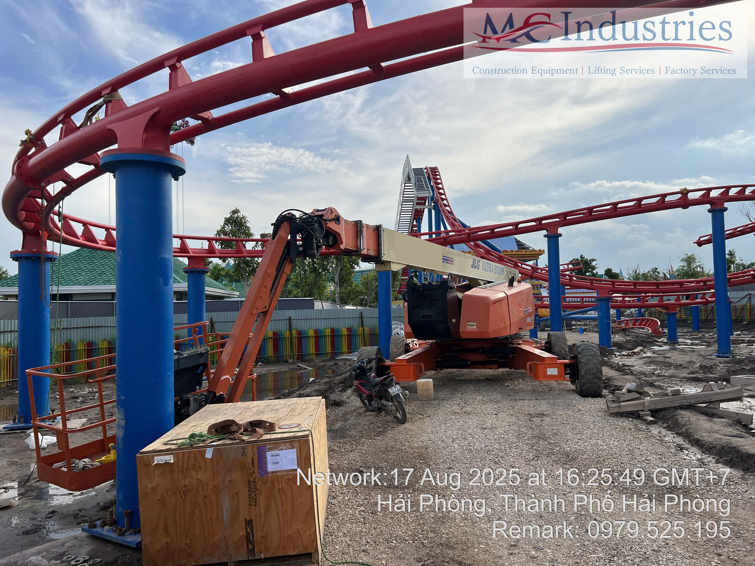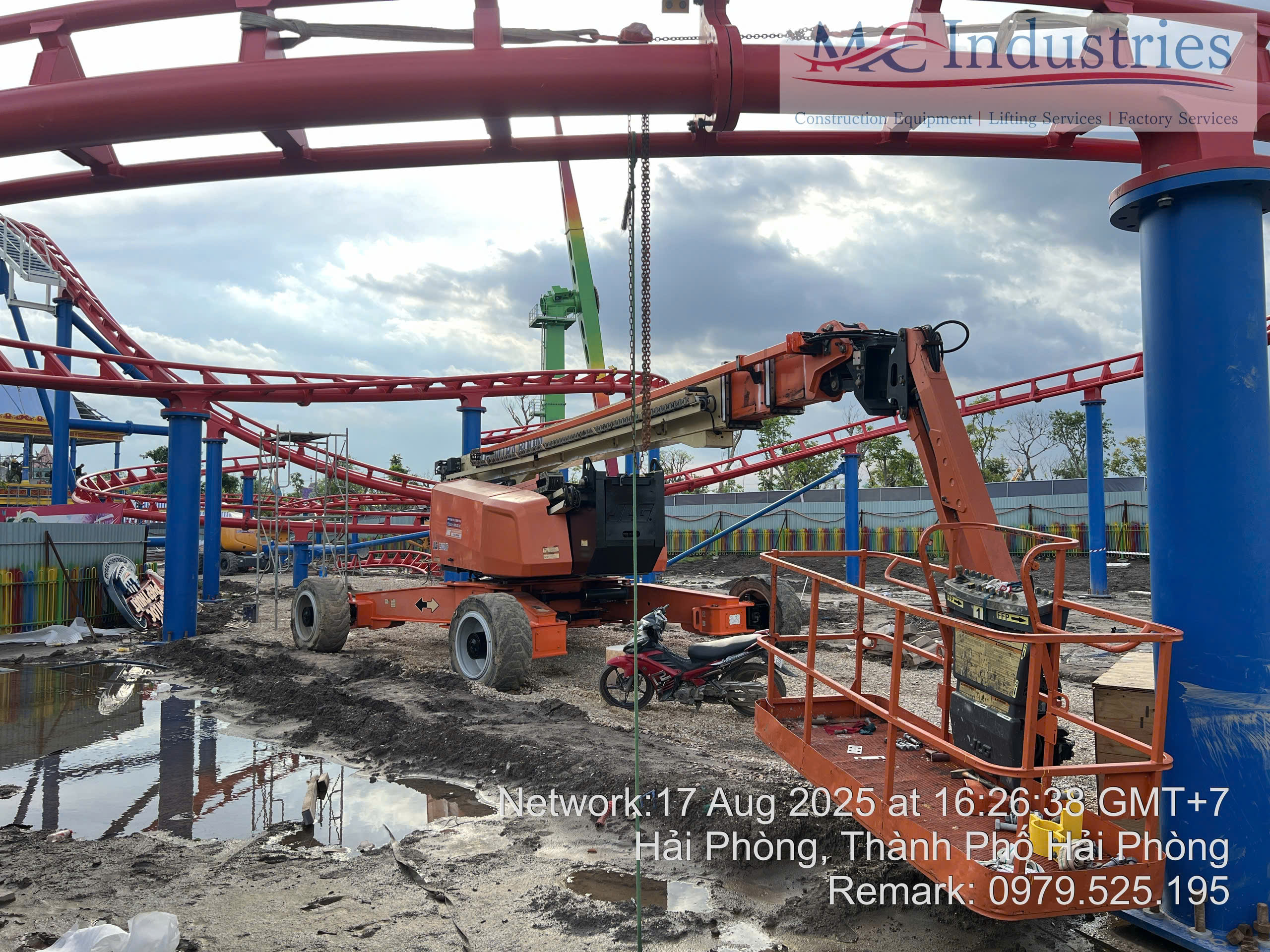 Dự án này cần sử dụng nhiều xe nâng người boom lift để lắp ráp thi công lắp đặt kết cấu thép, siết ốc, của đường ray xe lửa, ống trượt nước và hệ thống khu vực vui chơi.