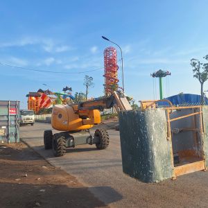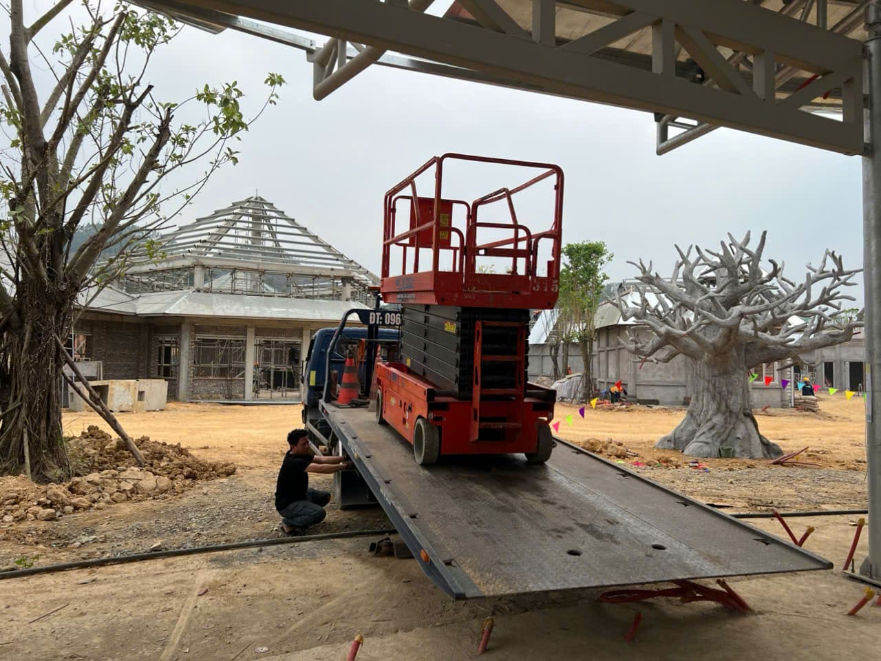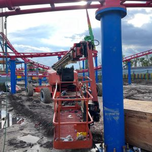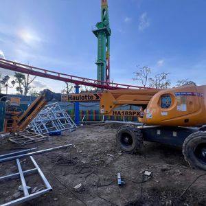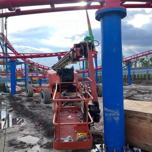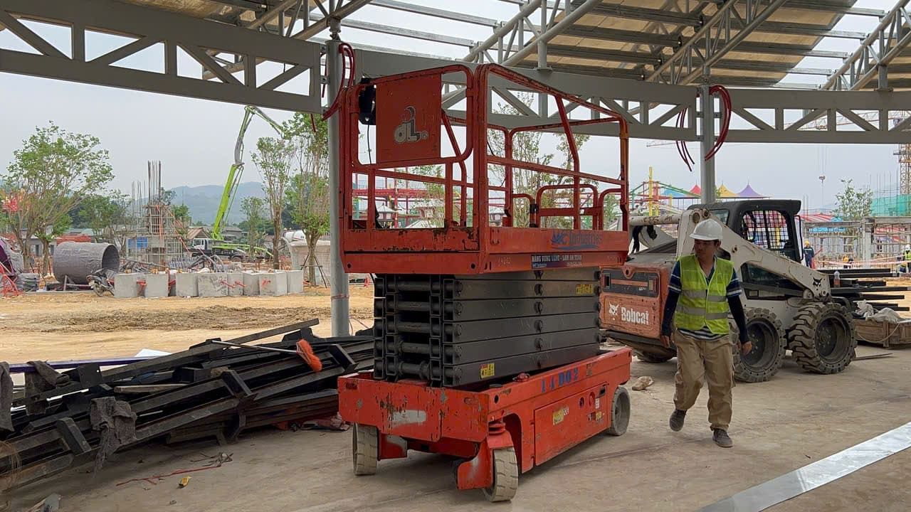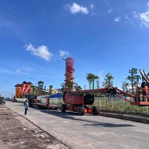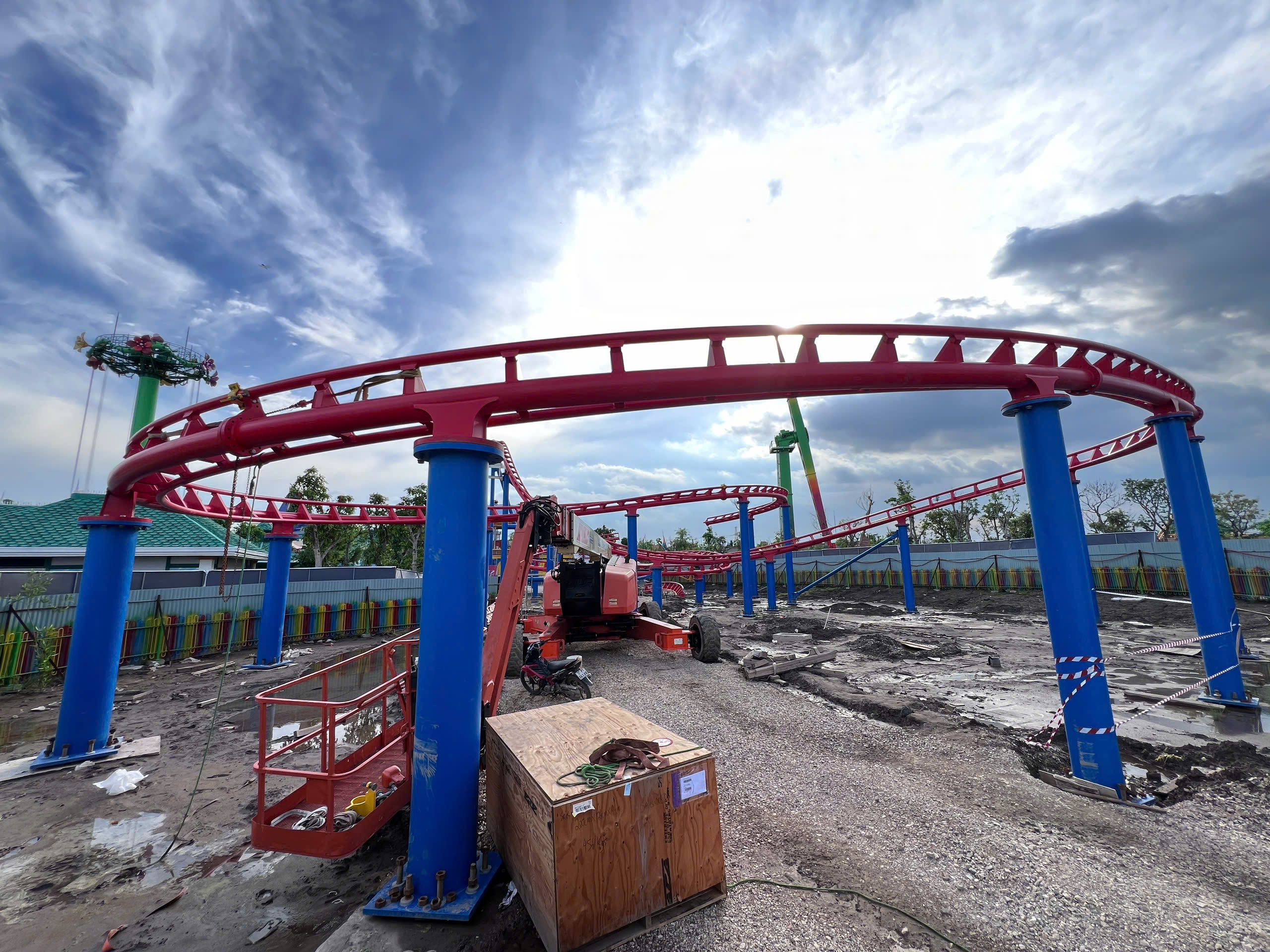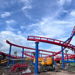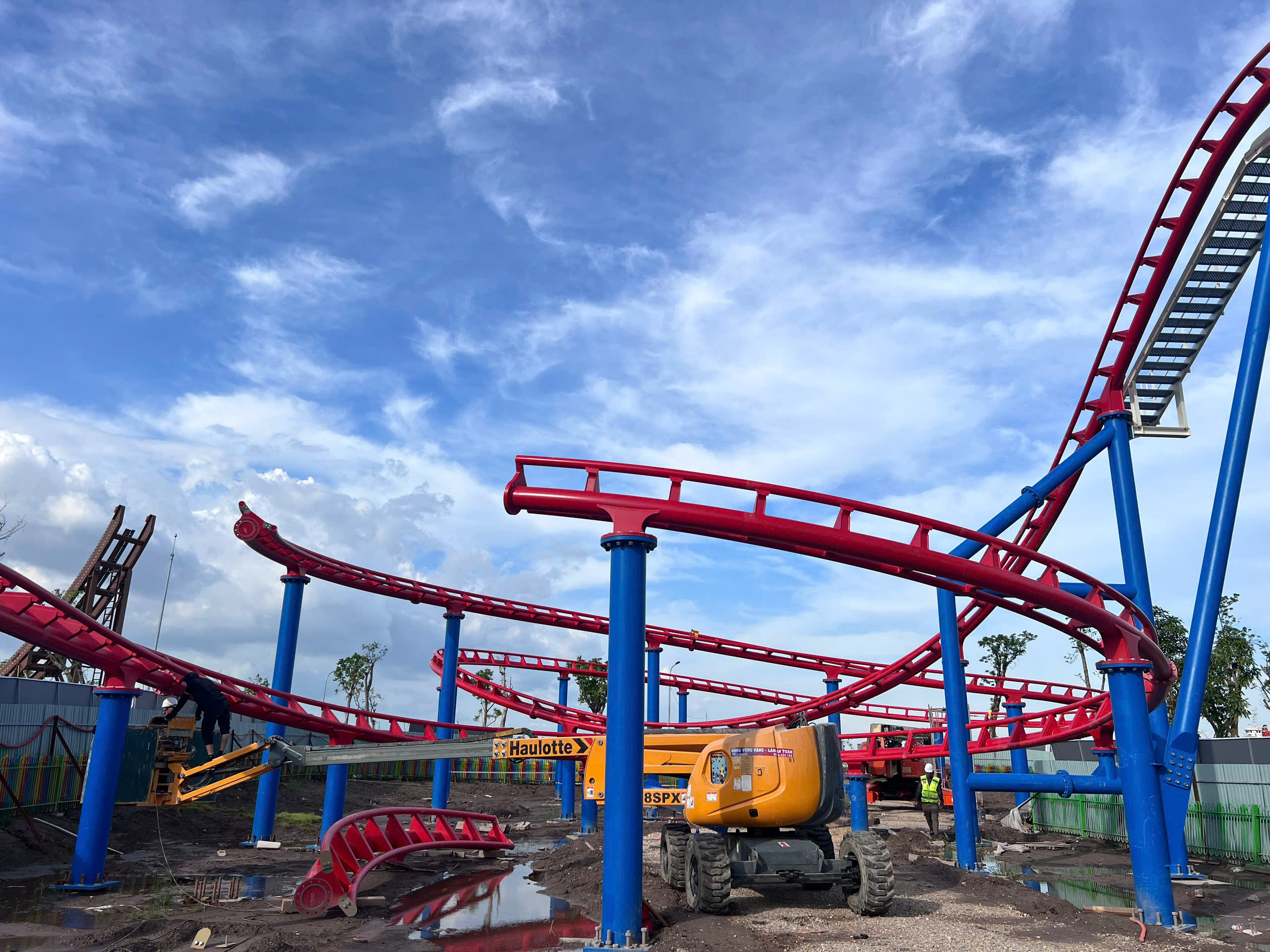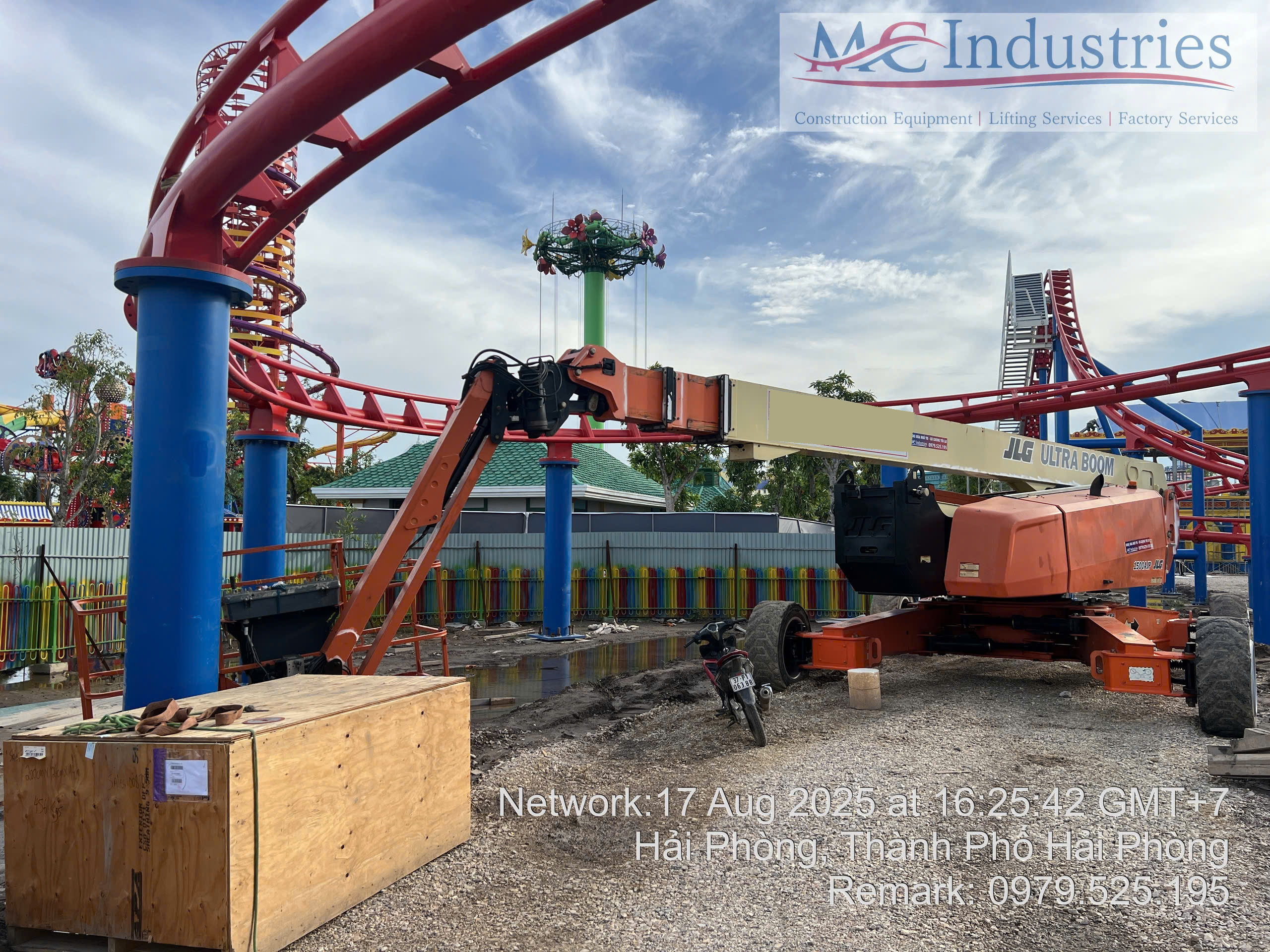 Dự án này cần sử dụng nhiều xe nâng người boom lift để lắp ráp thi công lắp đặt kết cấu thép, siết ốc, của đường ray xe lửa, ống trượt nước và hệ thống khu vực vui chơi.