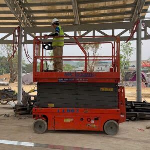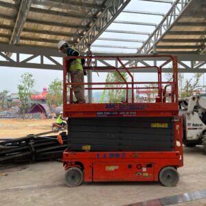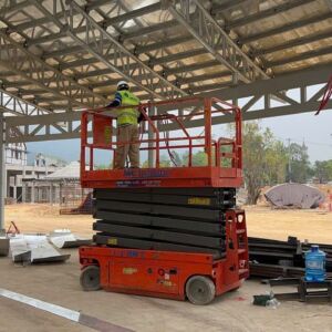 Khách hàng cần xe nâng người phục vụ công việc hoàn thiện nhà máy lắp đặt hệ thống điện, hệ thống phòng cháy chữa cháy,, hệ thống cơ điện tại công ty.