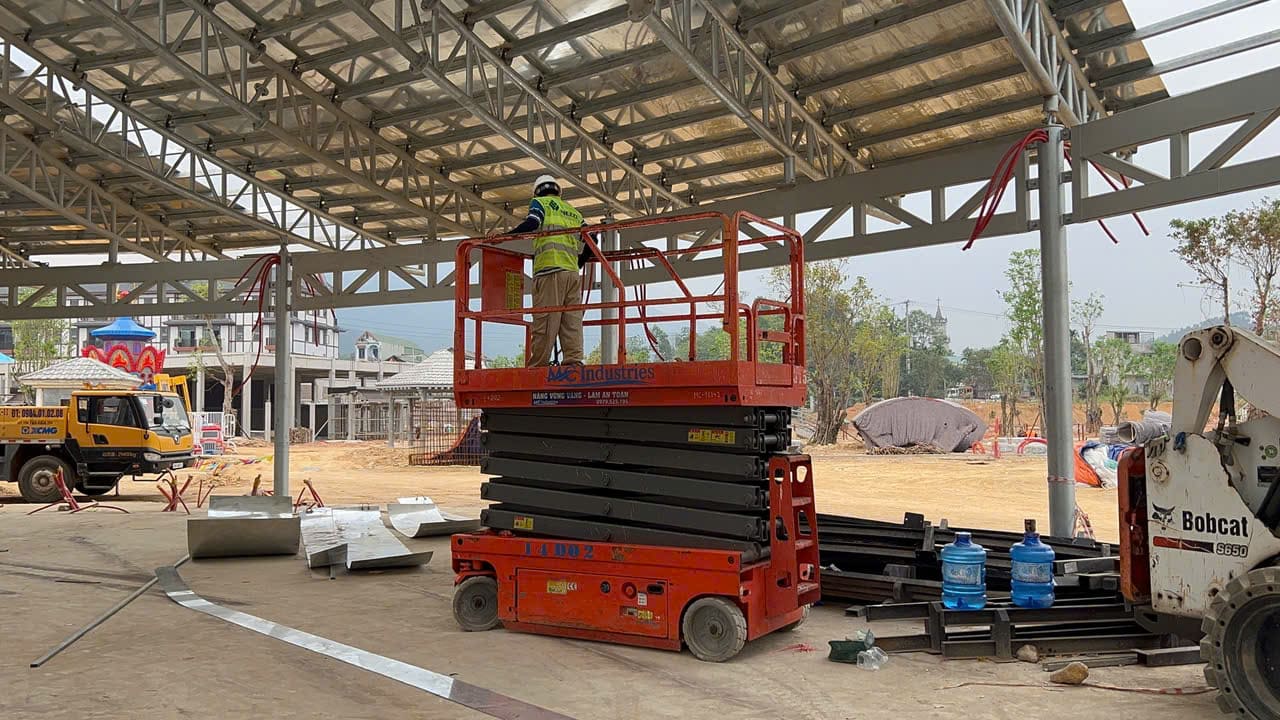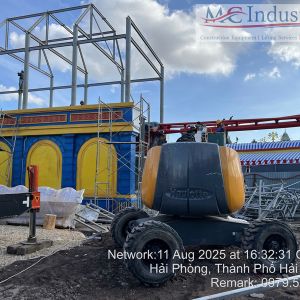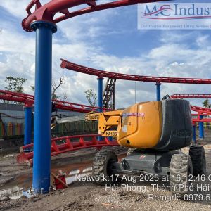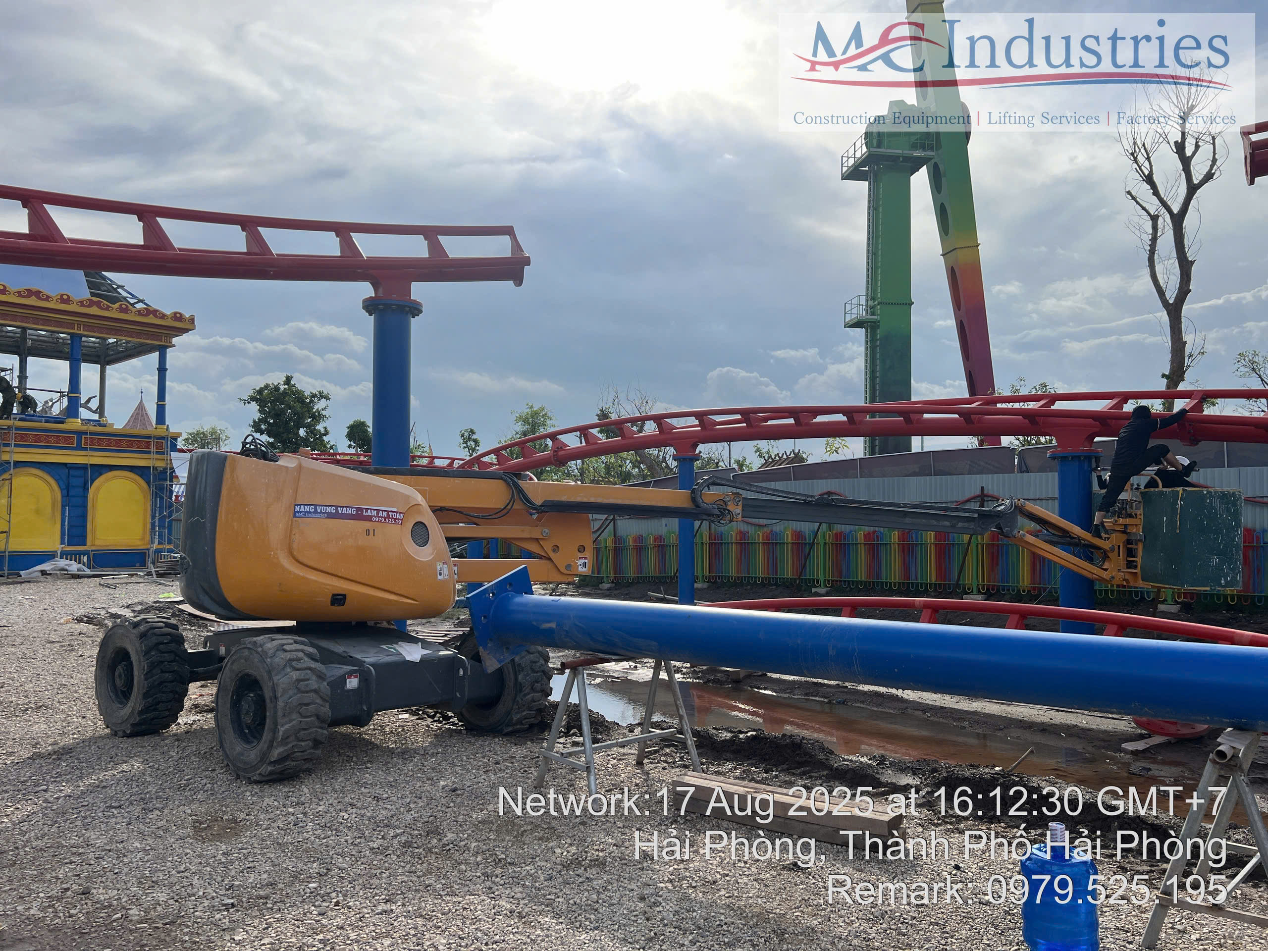 Khách hàng cần thuê xe nâng người phục vụ thi công lắp đặt hệ thống khung kết cấu thép, đường ray trượt xe lửa, ống trượt nước tại dự án xây dựng khu vui chơi, giải trí tại dự án xây dựng tại Vũ Yên, Hải Phòng.