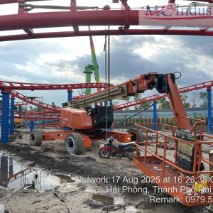 Khách hàng cần sử dụng xe nâng người lắp đặt tàu lượn trên cao trong dự án xây dựng tại Vin Vũ Yên Hải Phòng.Khách hàng cần gấp xe để chạy dự án vì dự án cần hoàn thiện sớm. Khi nhận được thông tin khách hàng cần xe đơn vị nhanh chóng điều động vận chuyển để vận chuyển xe nâng người ngay sau khi khách hàng gọi.