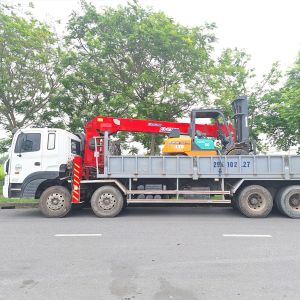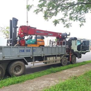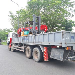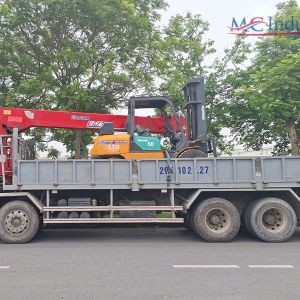 Khi hai bên thống nhất được thiết bị MC đã dùng xe vận chuyển cẩu thùng để vận chuyển và nâng hạ xe nâng hàng xuống đảm bảo an toàn và thuận tiện.