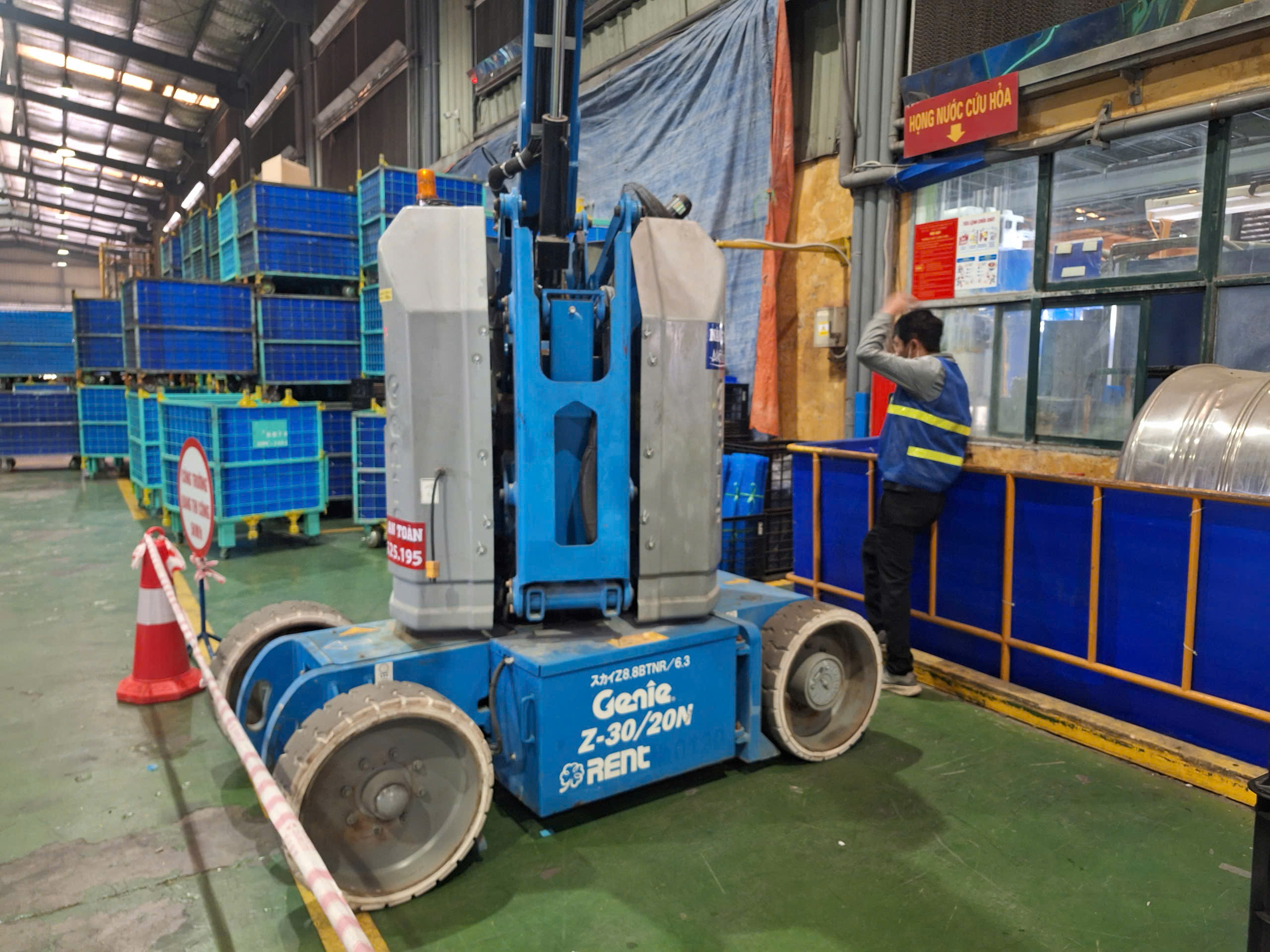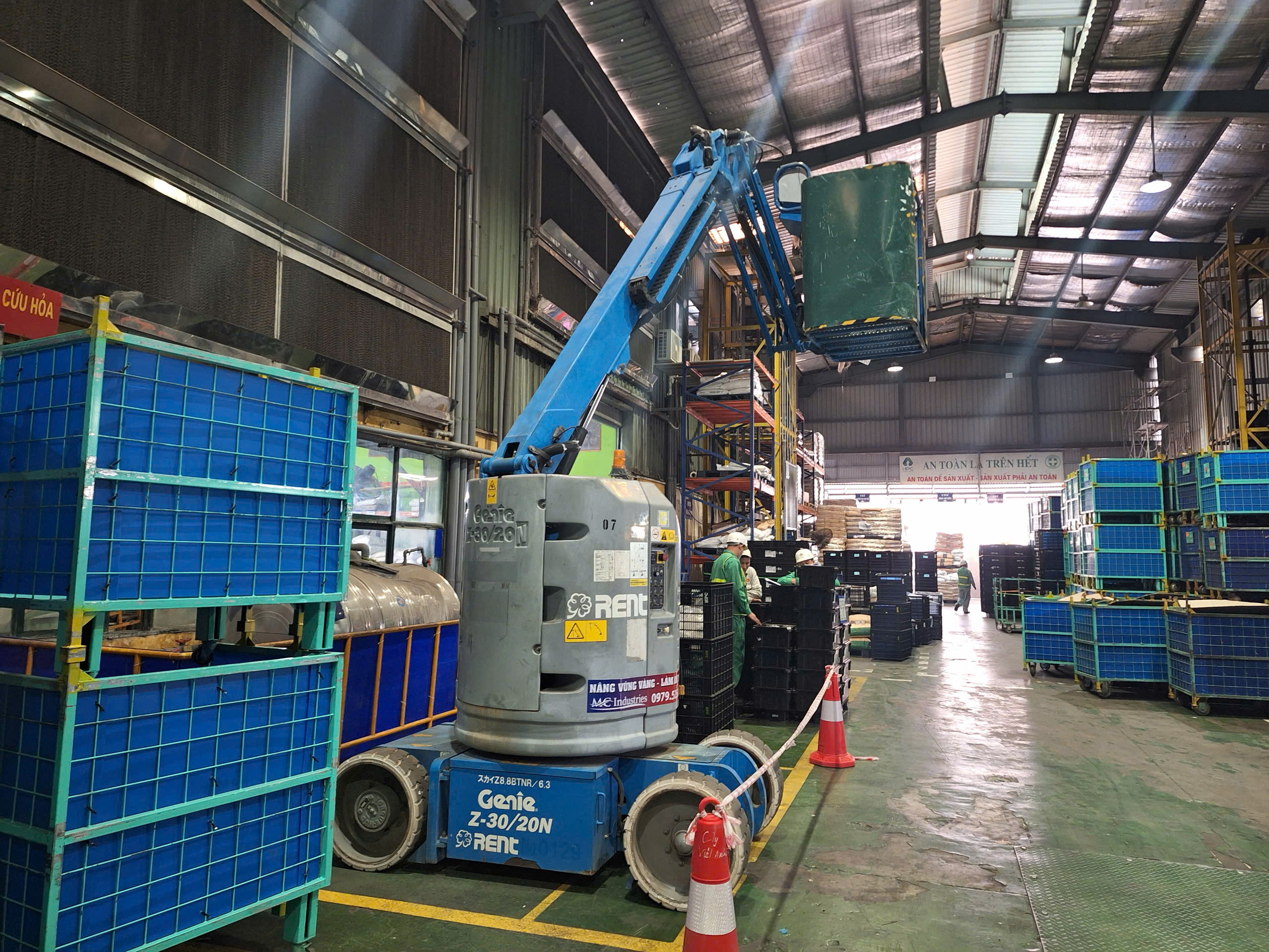 Khách hàng công ty CP đầu tư Thiết kế và xây dựng Việt Nam cần thuê xe nâng người boom lift 16m dạng gấp khúc về phục vụ bảo trì, bảo dưỡng nhà máy 2 ngày cuối tuần. Khách hàng đã tìm kiếm và lựa chọn đơn vị MC Industries để phục vụ khách hàng. MC với lợi thế gần, giao máy nhanh nên tiết kiệm tối đa chi phí vận chuyển, có thợ lái giàu kinh nghiệm lái xe để khách hàng làm việc, giá cả phải chẳng.