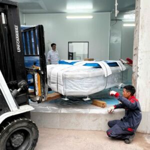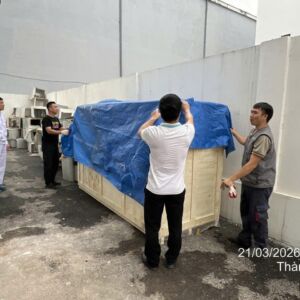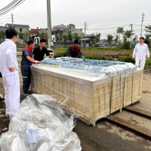 Sau khi hàng hóa vào trong nhà máy chúng tôi tiến hành tháo thùng gỗ và di chuyển vào vị trí để lắp đặt cho khách hàng.