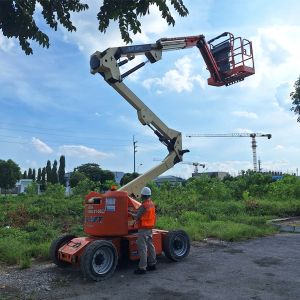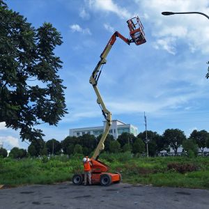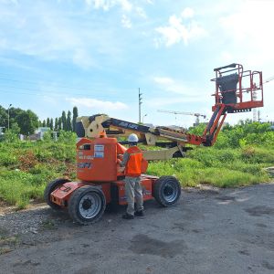 Khách hàng cần sử dụng xe nâng người boom lift 16m chạy điện dạng gấp khúc JLG E450AJ để thực hiện công việc bảo trì, bảo dưỡng nhà máy.