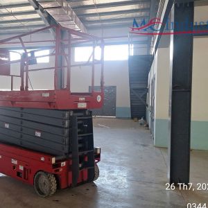 Khách hàng cần thuê xe nâng người cắt kéo 14m chạy điện để hoàn thành nốt hệ thống cơ điện, hệ thống PCCC trong nhà xưởng vừa hoàn thành phần thô của nhà máy.