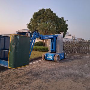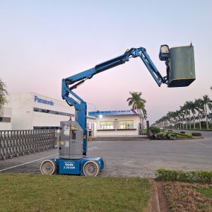 Công ty CP Công Nghiệp Sumitech thuộc khu công nghiệp Thăng Long 2, Hưng Yên. Khách hàng cần thuê xe nâng người phục vụ công tác lắp đặt hệ thống cơ điện tại nhà máy Panasonic.