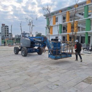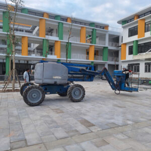 MC Industries cho thuê xe nâng người 16m boom lift cho công ty Phú Thái lắp đặt hệ thống đường máng điện cho trường tiểu học Việt Hùng Đông Anh, Hà Nội