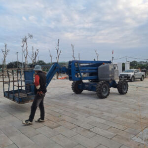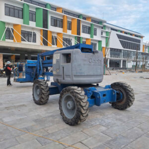 Xe nâng người boom lift loại gấp khúc giúp khách hàng tiếp cận vị trí làm việc tốt hơn. Xe thuộc xe nâng người chạy dầu phù hợp làm việc ngoài trời.