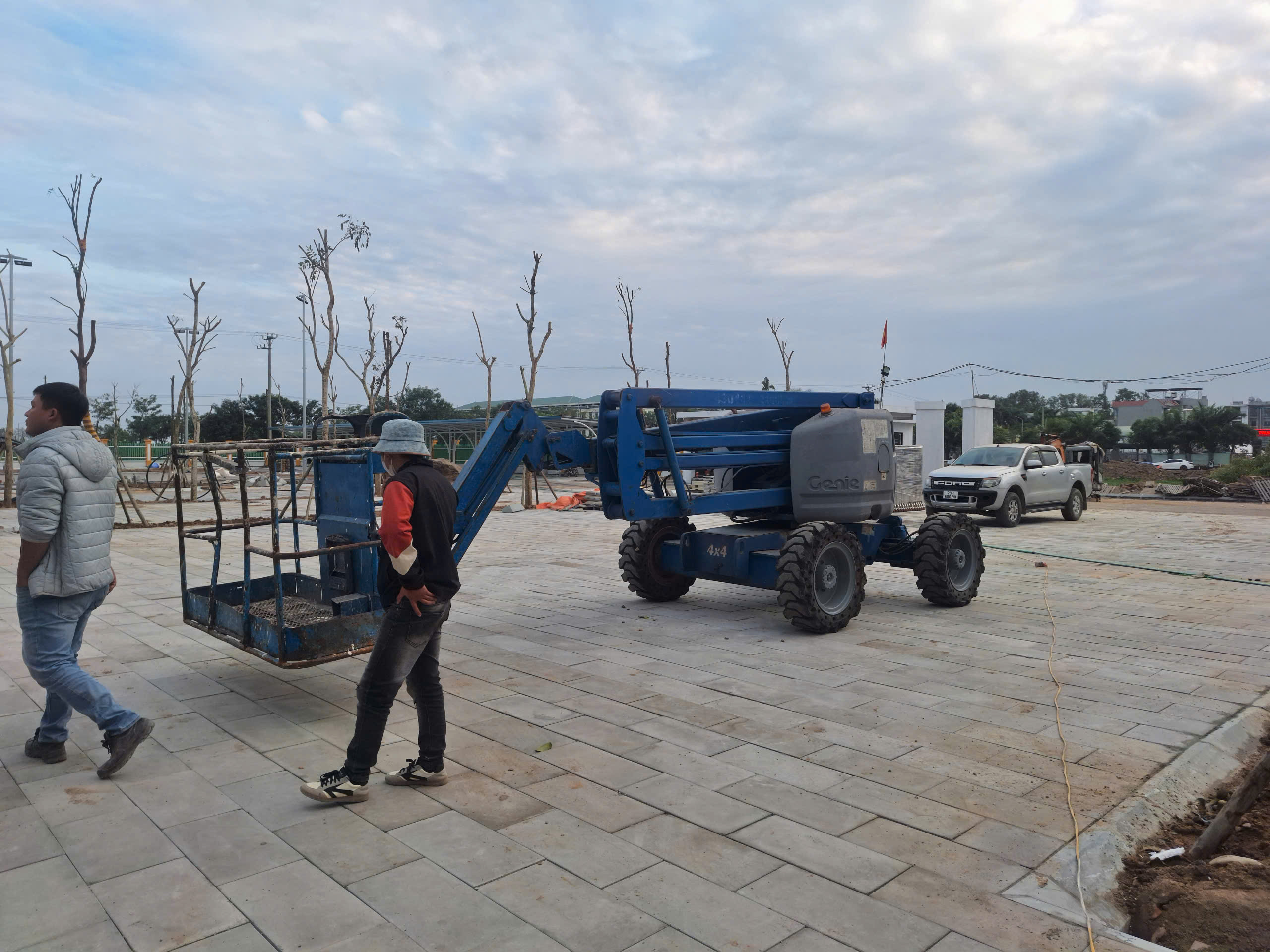 Ngày 25/12/2025 MC Industries cung cấp xe nâng người boom lift 16m Genie Z45/25JRT phục vụ lắp đường ống để chạy dây điện ngoài trời cho trường tiều học.