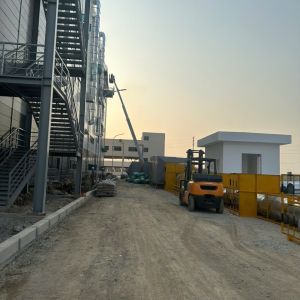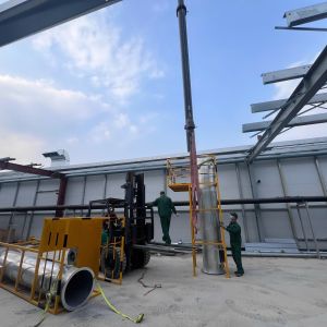 Khách hàng cần đơn vị chúng tôi cung cấp xe nâng hàng và xe cẩu để nâng các cấu kiện máy móc của nhà máy lên trên mái của nhà máy lắp đặt.