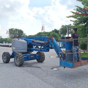 Xe nâng người Z boom với lợi thế có khả năng luồn lách qua chướng ngại vật tốt nên phù hợp làm việc tại dự án sửa chữa, sơn sửa này.