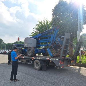 MC Industries cung cấp xe nâng người boom lift 16m phục vụ tòa nhà Hateco Long Biên