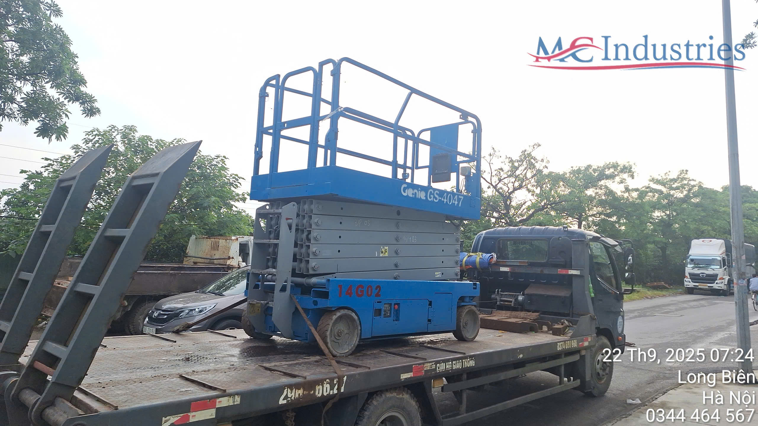 MC Industries cho thuê xe nâng người cắt kéo 14m phục vụ nhà máy Nhựa Hà Nội