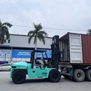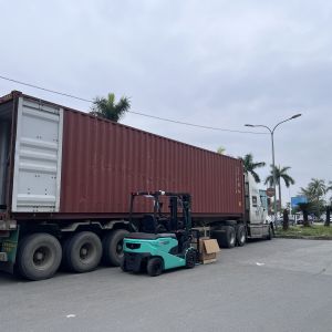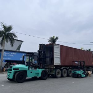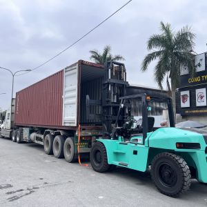 Những hàng hóa nhỏ xe nâng hàng 5 tấn phụ trách chuyển vào, xe nâng 10 tấn nâng hạ hàng từ trên xe xuống. Hàng hóa không có nhiều chỉ có 1 container và đơn vị chúng tôi thực hiện công việc trong vòng 1 ngày là hoàn thành.