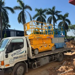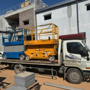 Khách hàng thuê xe làm việc trong vòng 1 tháng, không thợ lái. Khách hàng khi lắp đặt hệ thống PCCC cần 2 xe nâng người song song nâng ống lên để lắp đặt vì vậy cần 2 xe nâng người 12m cắt kéo điện làm việc.