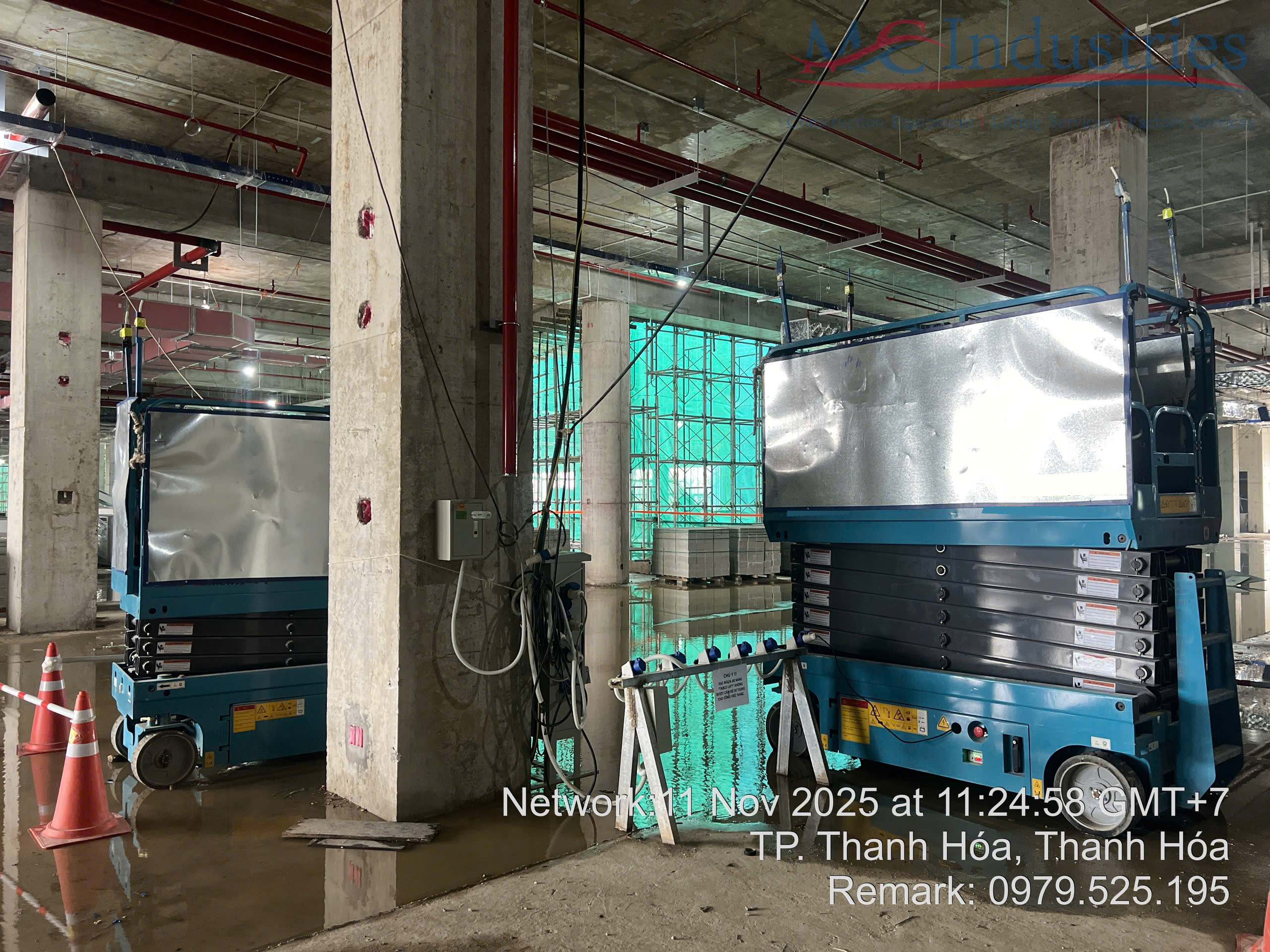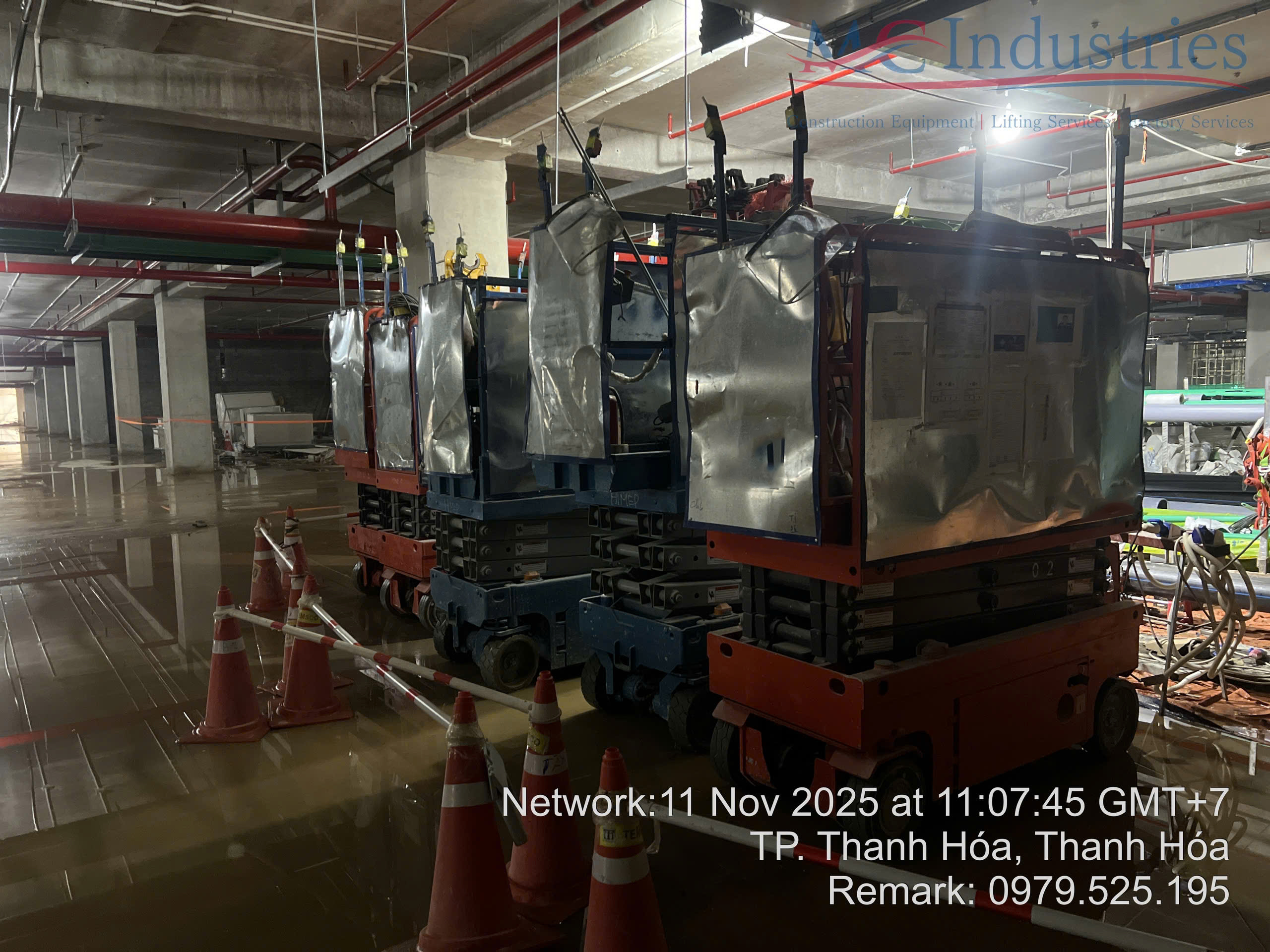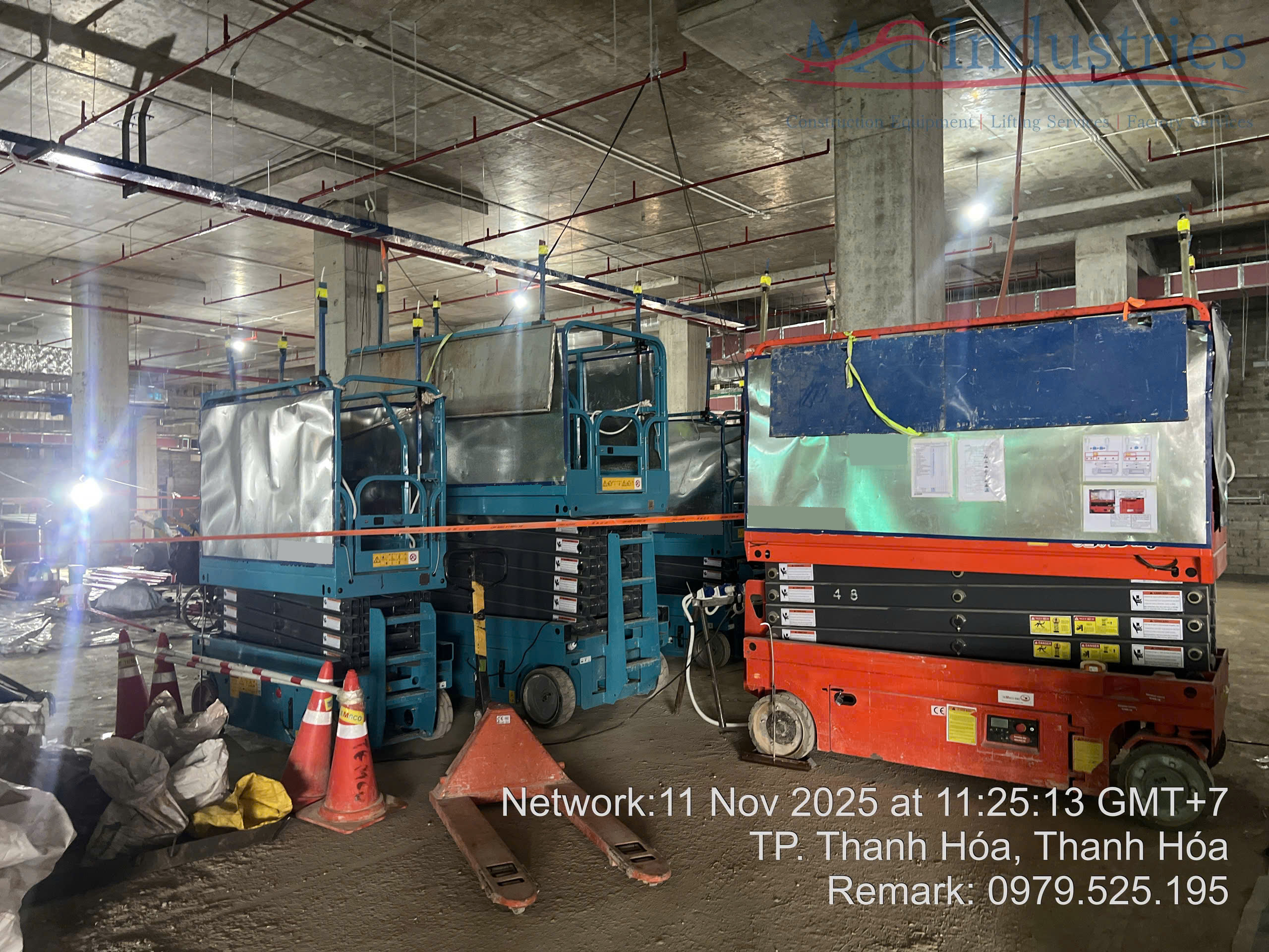 Ngày 11/11 MC Industries cung cấp 6 xe nâng người cắt kéo điện và 1 xe nâng hàng phục vụ dự án xây dựng trung tâm thương mại Aeon mall Thanh Hóa.