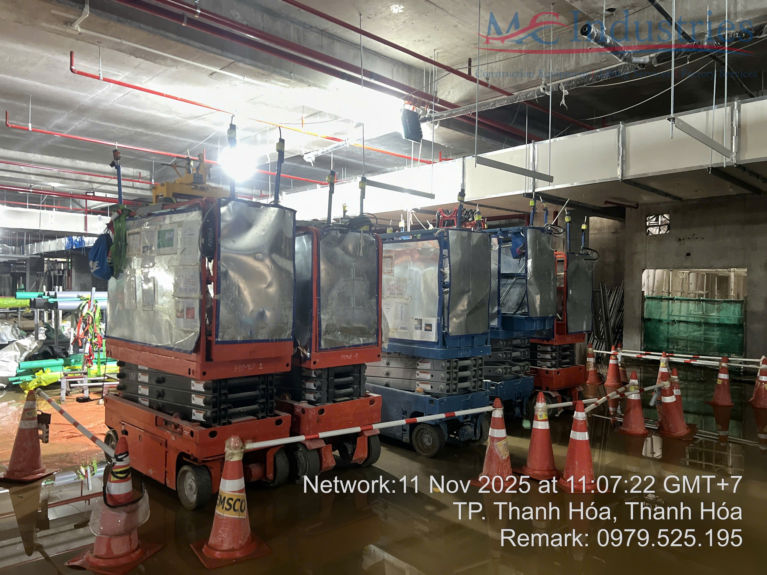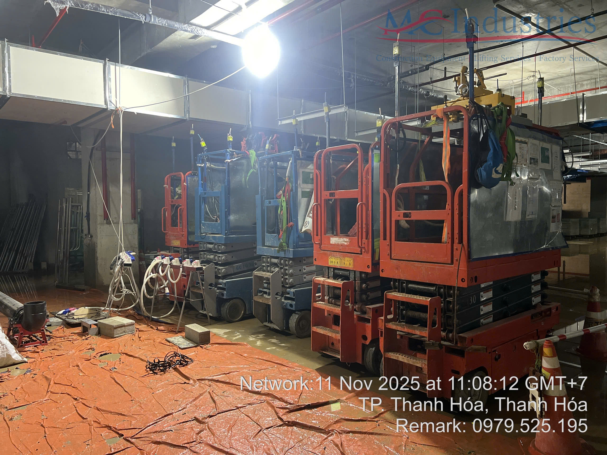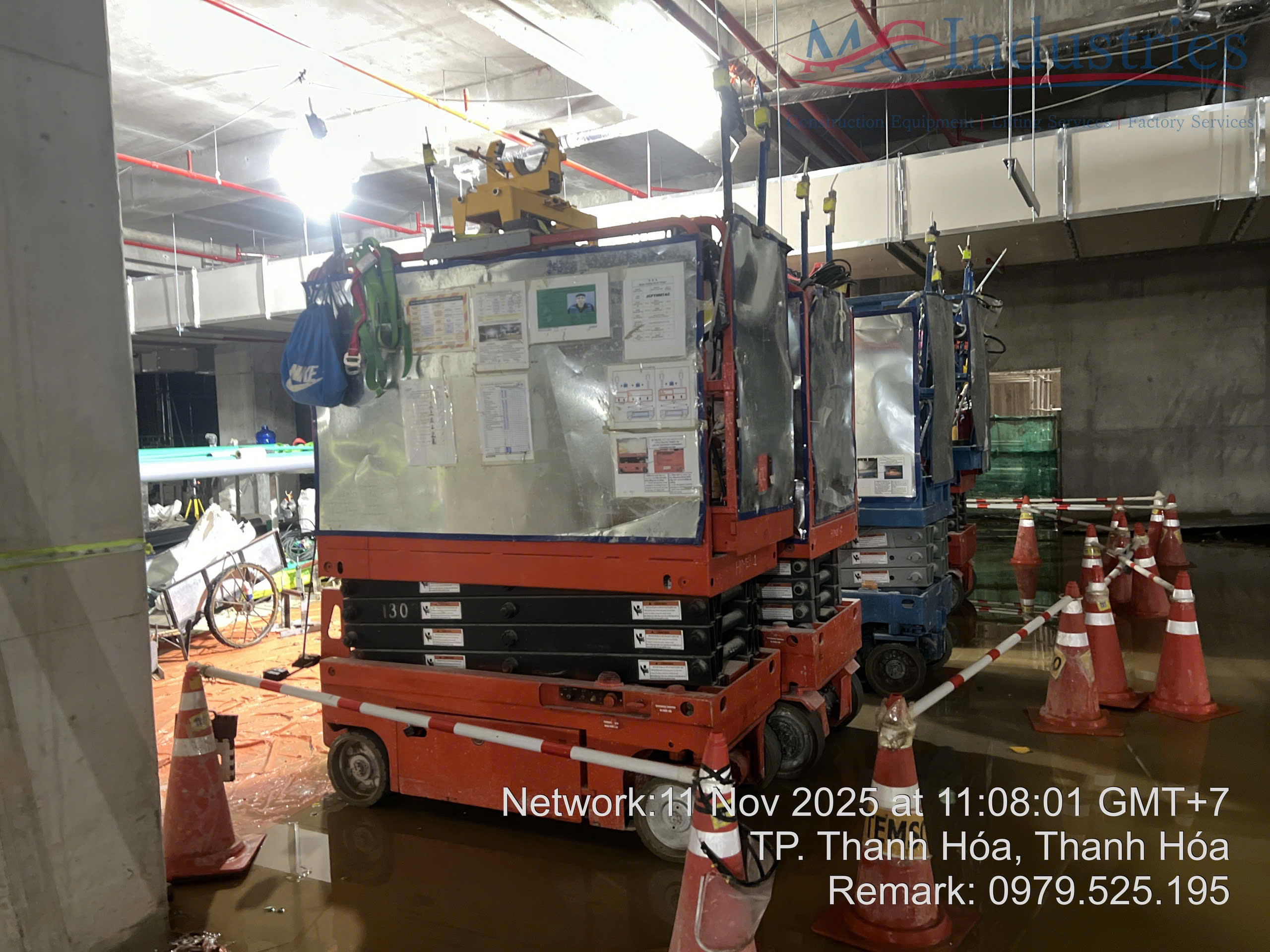 Ngày 11/11 MC Industries cung cấp 6 xe nâng người cắt kéo điện và 1 xe nâng hàng phục vụ dự án xây dựng trung tâm thương mại Aeon mall Thanh Hóa.