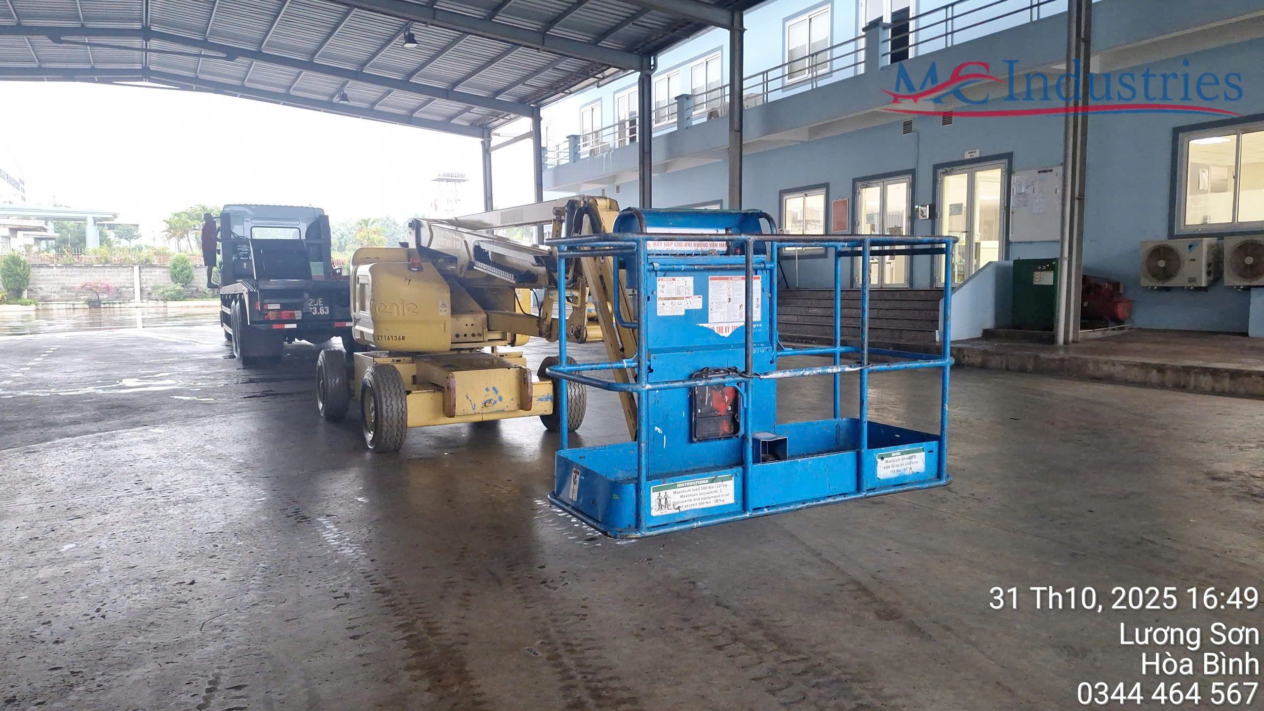 Ngày 31/10/2025 MC Industries cung cấp xe nâng người 16m boom lift phục vụ bảo trì, sửa chữa, thay thế hệ thống bóng đèn tại nhà máy.