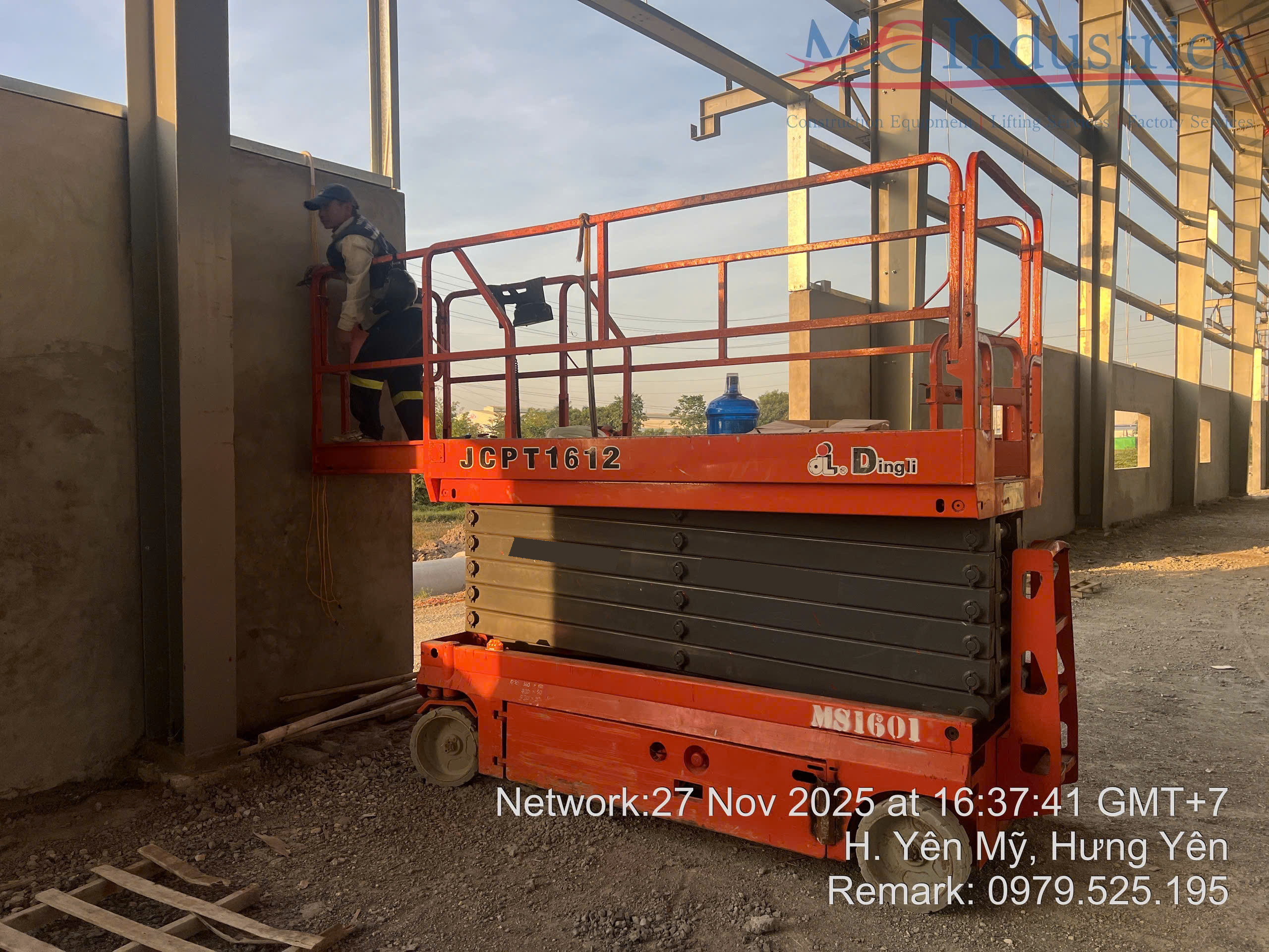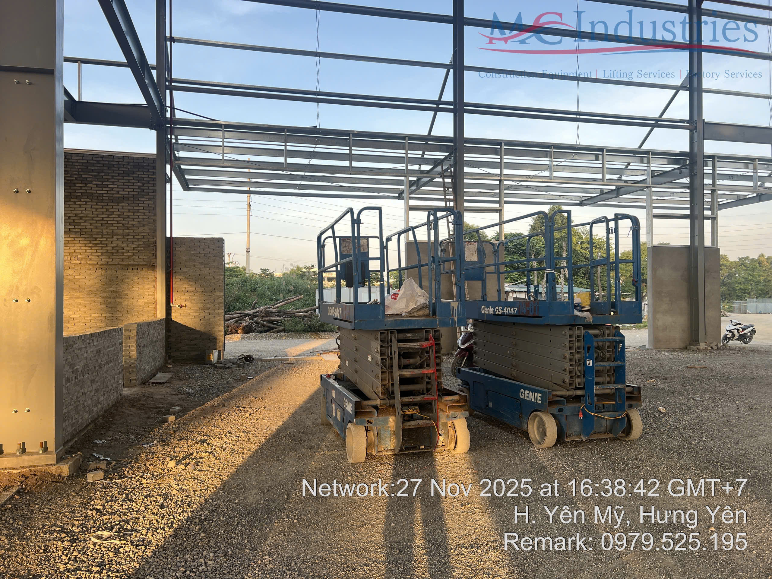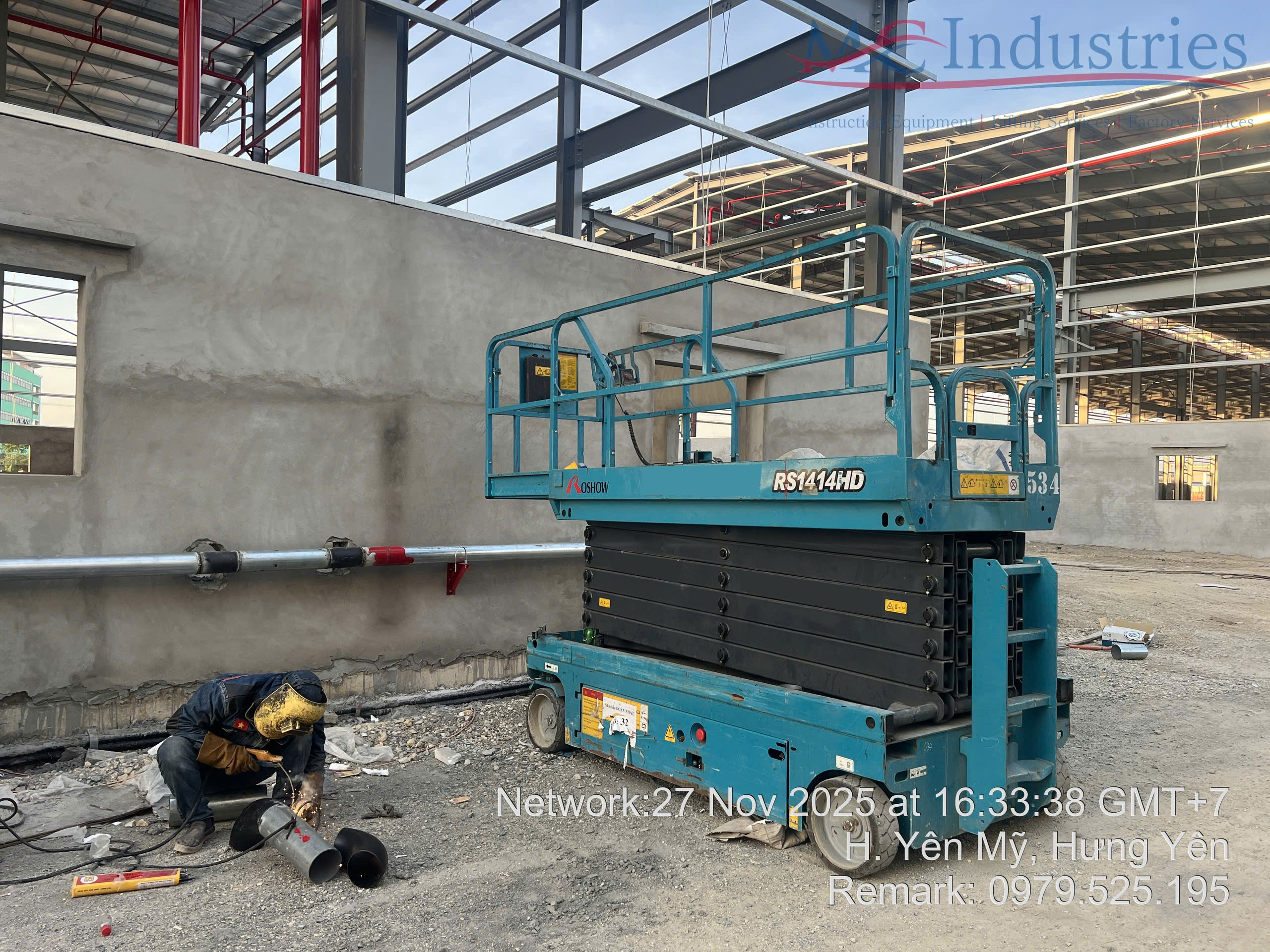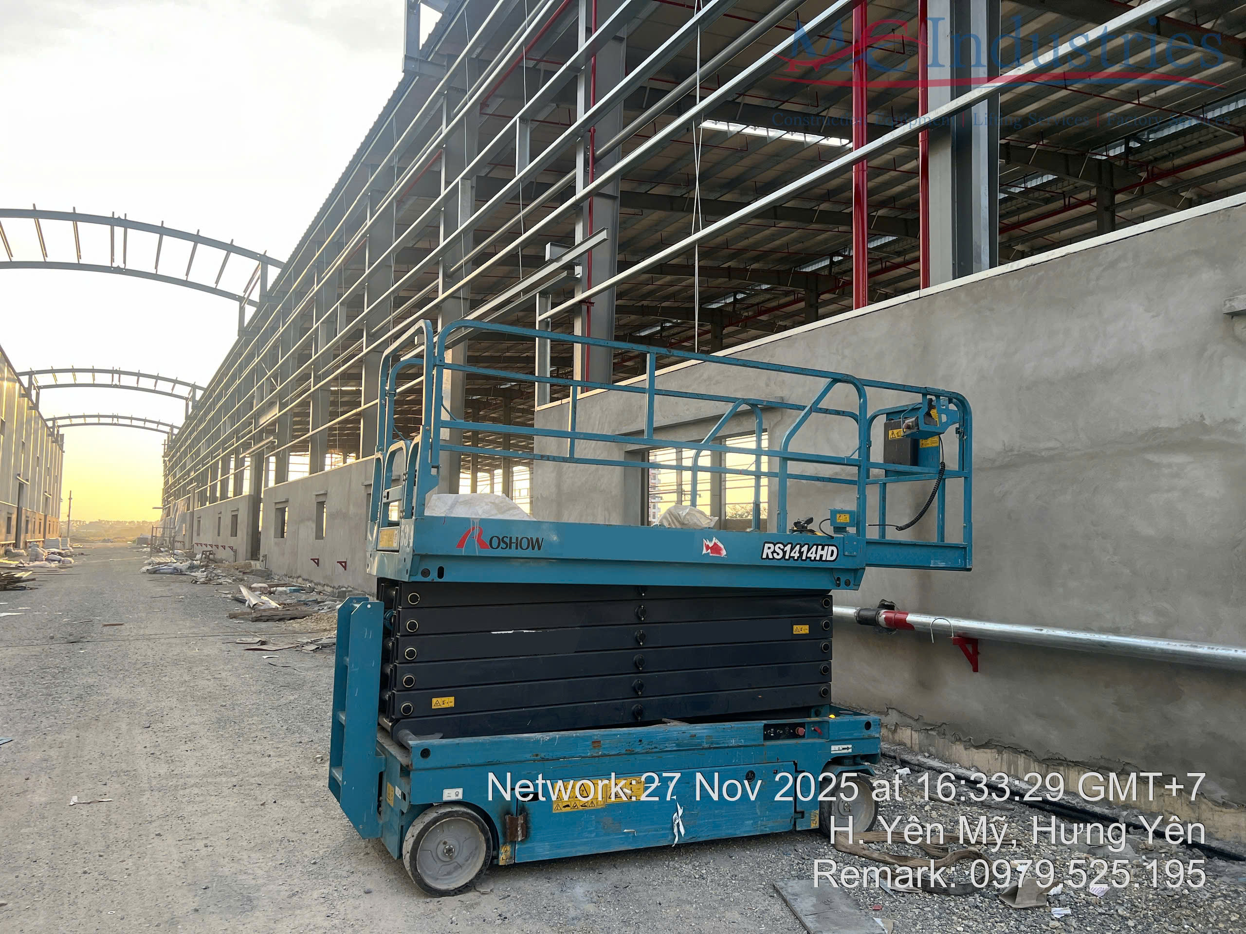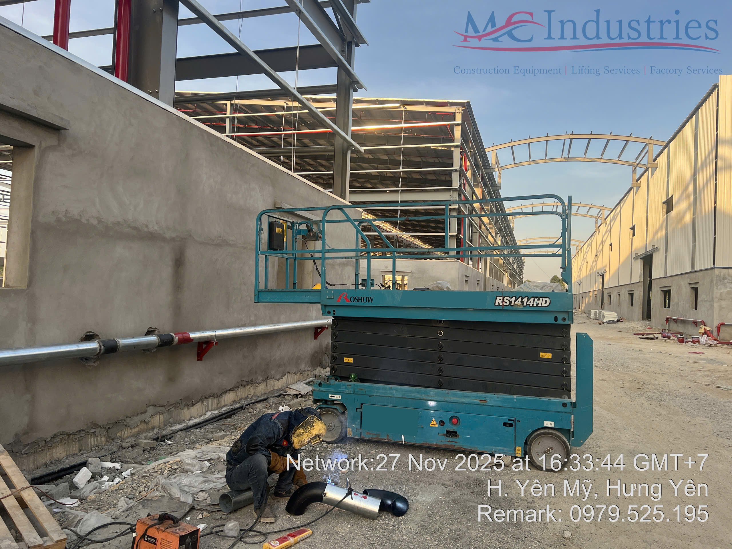Ngày 27/11/2025 MC Industries cung cấp 3 xe nâng người cắt kéo 16m chạy điện phục vụ lắp đặt hệ thống cơ điện, PCCC cho nhà máy AURA tại Mỹ Hào, Hưng Yên.