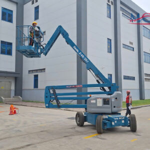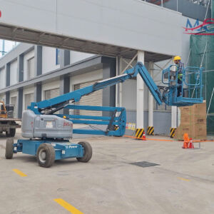 Sau khi trao đổi chi tiết với khách hàng, đơn vị chúng tôi đã tư vấn khách hàng lựa chọn xe nâng người boom lift dạng gấp khúc 16m làm việc.