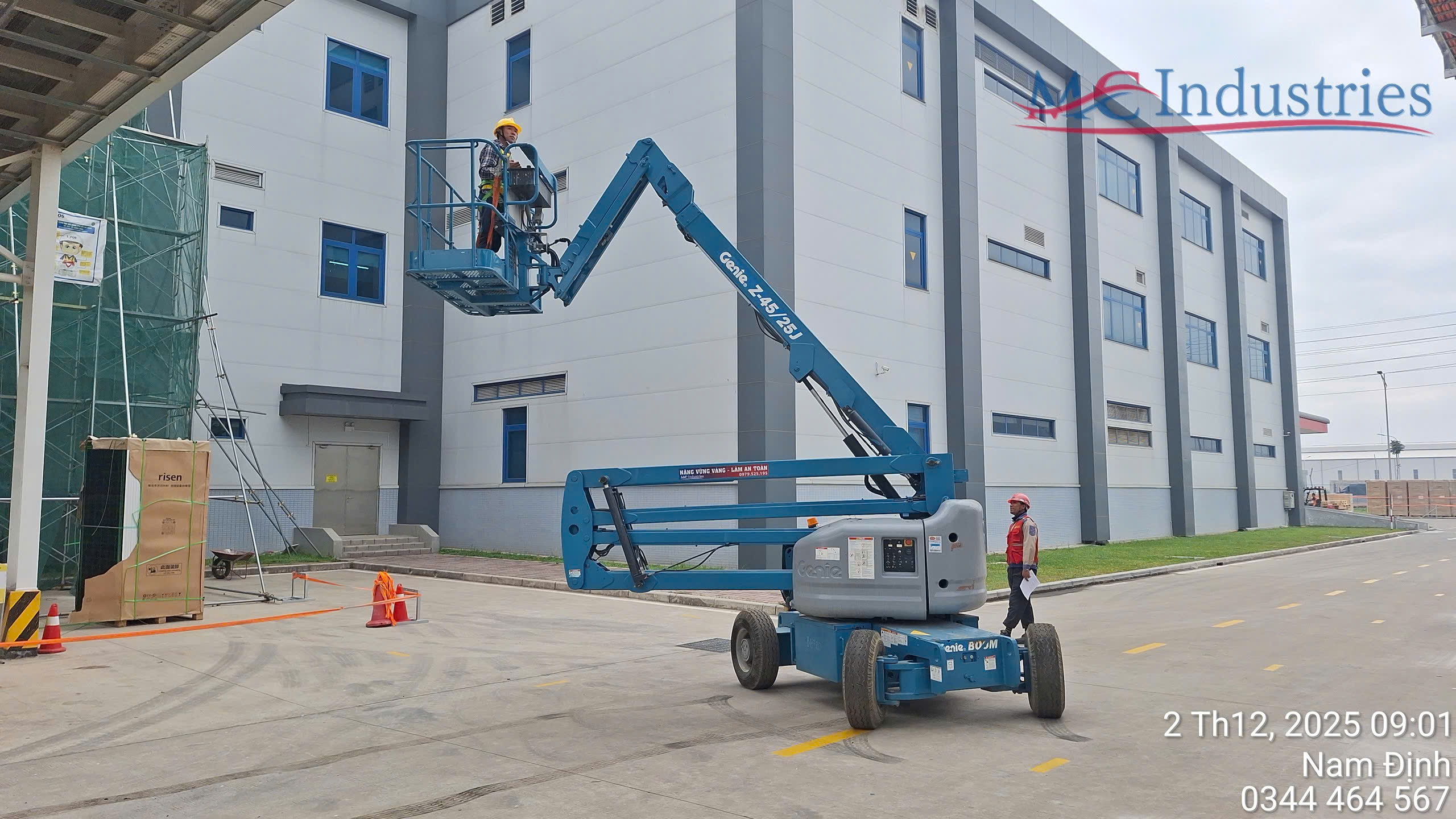 MC Industries cung cấp cho thuê xe nâng người 16m boom lift tại công ty Bắc Biệt Cheng Da tại KCN Mỹ Trung, Nam Định