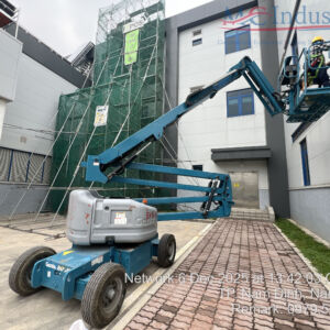 Xe nâng người boom lift dạng gấp khúc có khả năng tiếp cận vị trí làm việc nhiều vật cản rất tốt, tầm với ngang tốt nên đáp ứng yêu cầu của khách hàng.