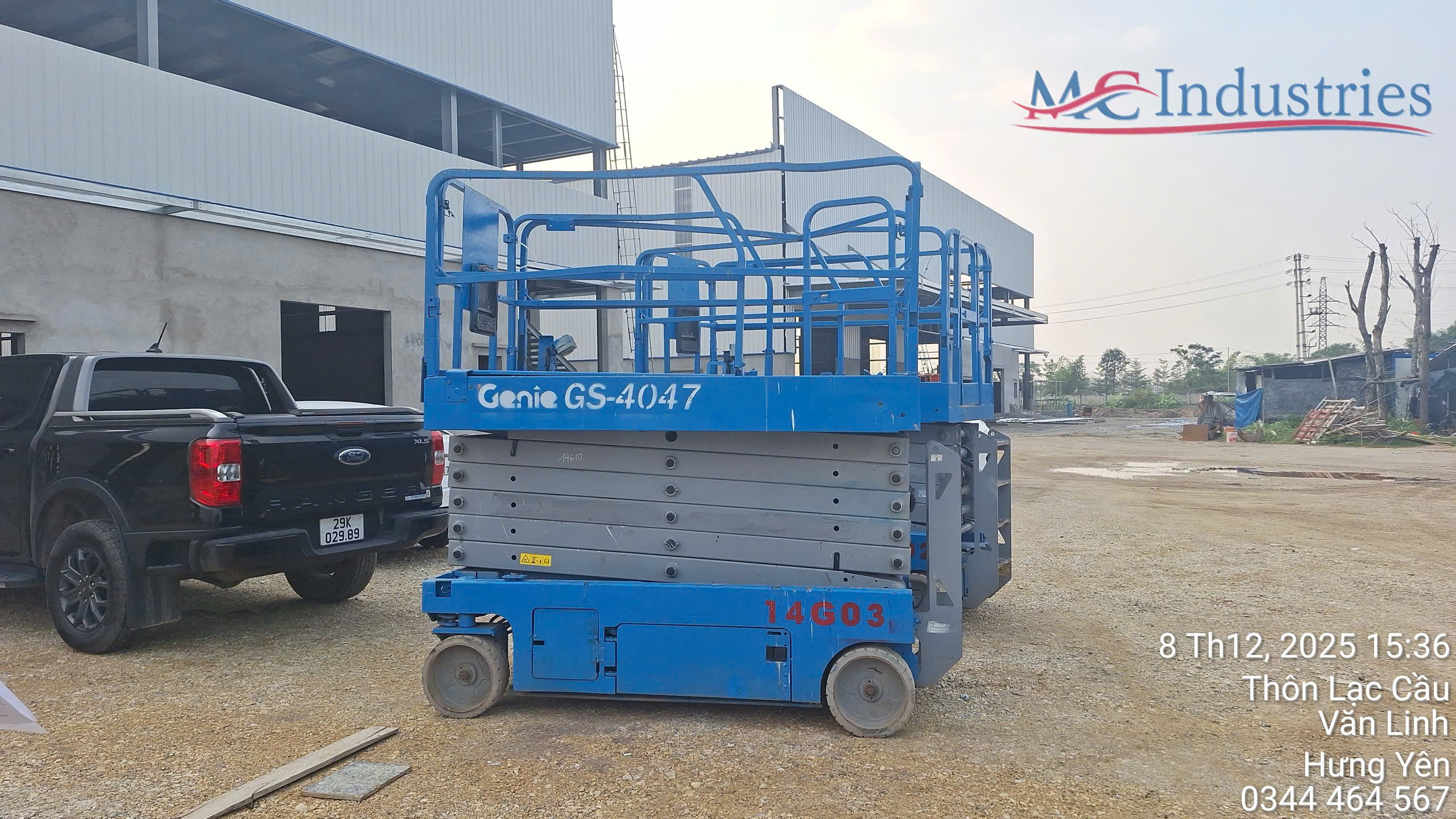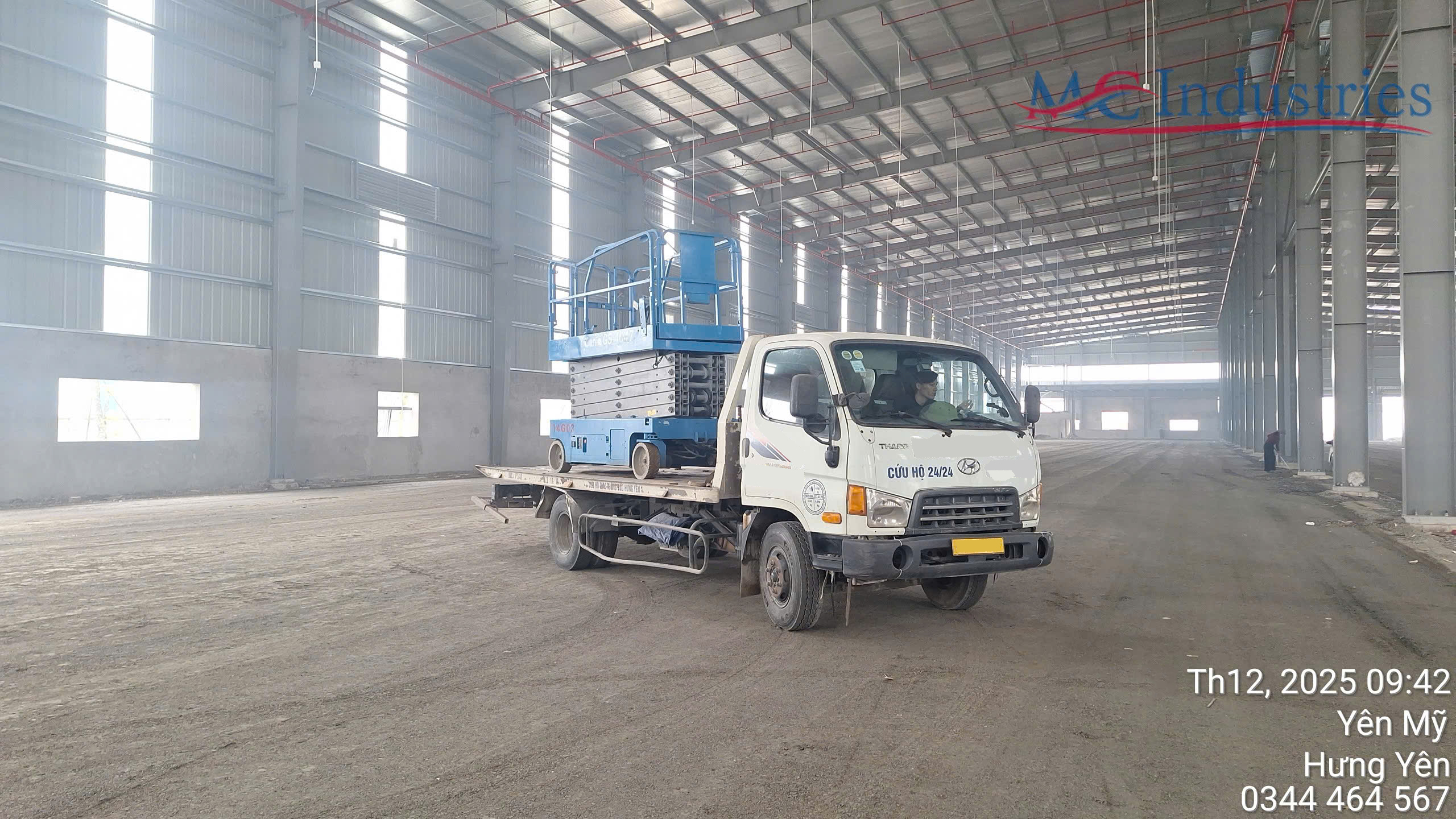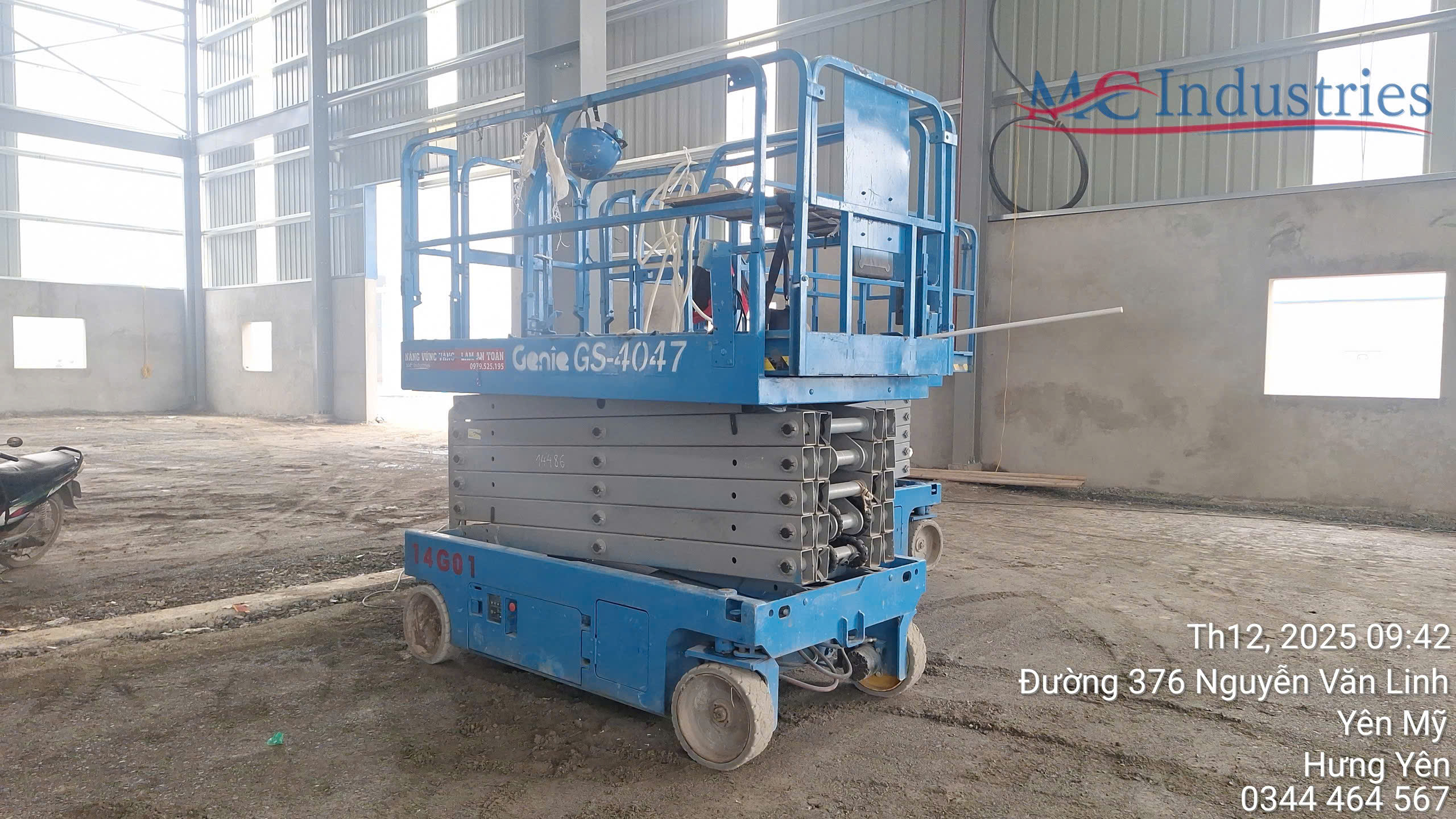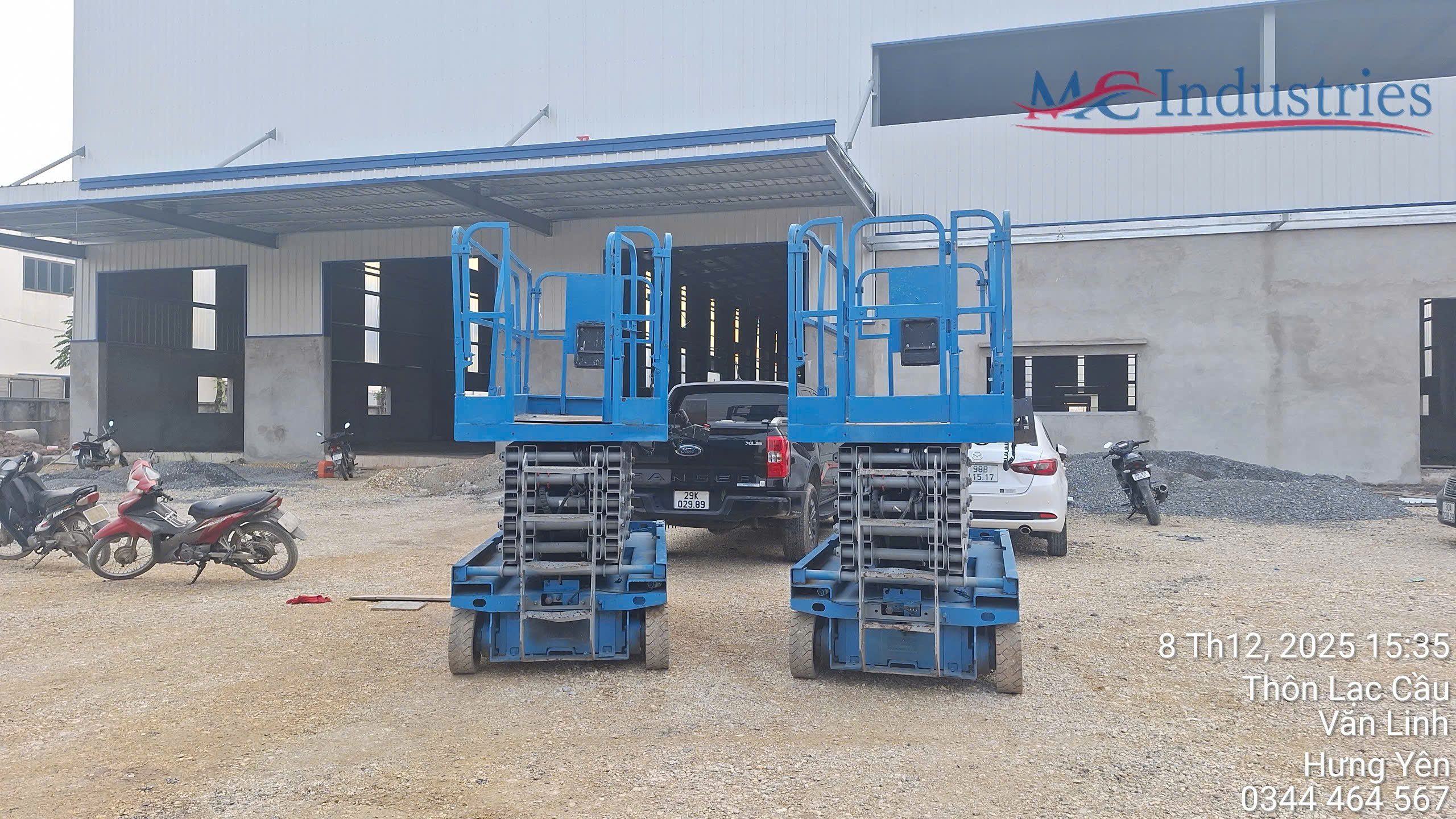 Ngày 8/12/2025 MC Industries cung cấp thêm 2 xe nâng người cắt kéo chạy điện 14m để đẩy nhanh tốc độ dự án cho nhà máy.