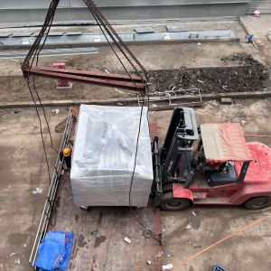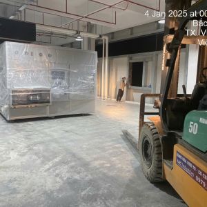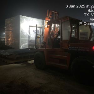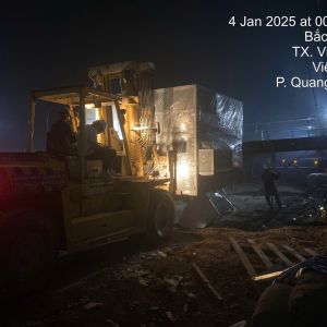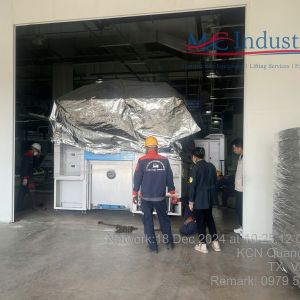 Ngày 18/12/2024 cung cấp dịch vụ di chuyển máy móc từ xe vận chuyển vào và lắp đặt trong nhà máy.