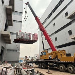 Lần này đơn vị sử dụng xe nâng hàng 5 tấn, xe nâng hàng 10 tấn, con lăn, rùa hơi, xe nâng tay, xe cẩu lốp 75 tấn, xe nâng người 28m để phục vụ công tác lắp đặt máy móc trong nhà xưởng.